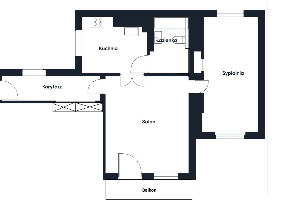 • Sypialnia z dwoma oknami na przeciwległych ścianach: pojemne szafy, łóżko 180 cm z dużym pojemnikiem, miejsce na biurko lub łóżeczko dziecięce. Możliwość łatwego wydzielenia dwóch niezależnych pokoi.
