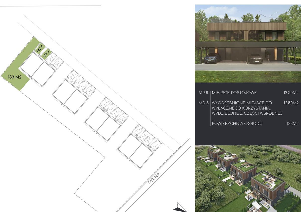 Nieruchomość znajduje się w kameralnej inwestycji Pylna Residence, składającej się z 4 budynków dwulokalowych (łącznie 8 apartamentów). Osiedle jest zamknięte i monitorowane, co zapewnia mieszkańcom prywatność i bezpieczeństwo.