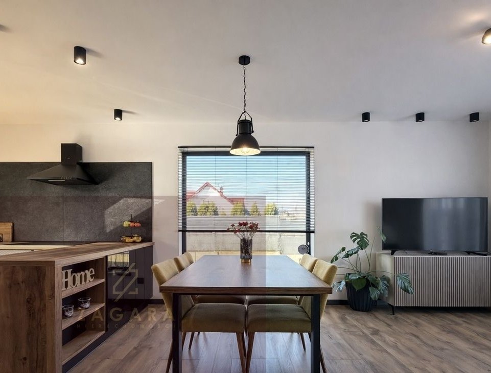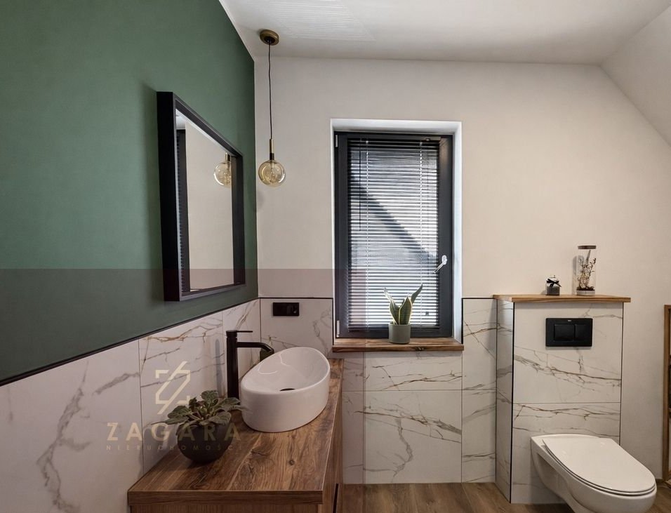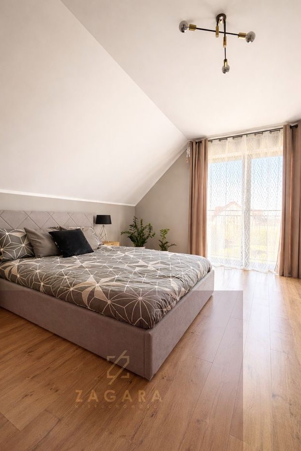 Dom znajduje się w spokojnej, zadbanej okolicy, która zapewnia komfort codziennego życia oraz bliskość natury. Działka o powierzchni 430 m² daje możliwość stworzenia przytulnego ogrodu, miejsca do relaksu czy przestrzeni dla dzieci.