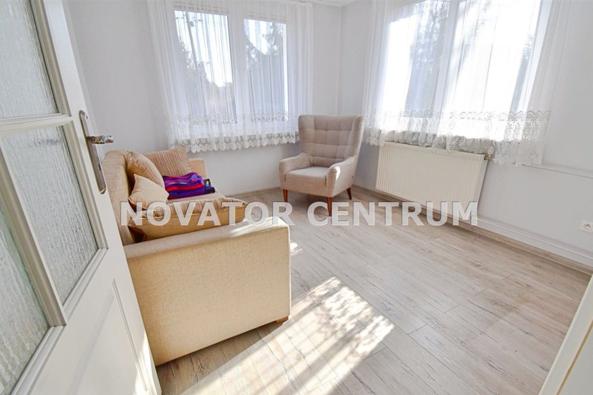 Dom wybudowany w latach siedemdziesiątych i gruntownie wyremontowany 15 lat temu. Remont obejmował wszystkie pomieszczenia wewnątrz budynku, w tym również wymianę wszystkich niezbędnych instalacji. wymieniony został również piec. Zewnątrz dom został ocieplony wełną mineralną, wymieniony został również dach na blachodachówkę oraz wszystkie okna. Na parterze zaprojektowano 4 pokoje, kuchnię, przedpokój, łazienkę oraz spory wiatrołap. Obecnie dwa pokoje zostały połączone tworząc duży salon. Powierzchnia mieszkalna parteru to 80 m2. Dom podpiwniczony. Piwnica ok 25 m2 wyposażona w kotłownie na piec na eko groszek. Na poddaszu o powierzchni ok.30 m2 znajduję się strych podzielony na 2 pomieszczenia do wykończenia.