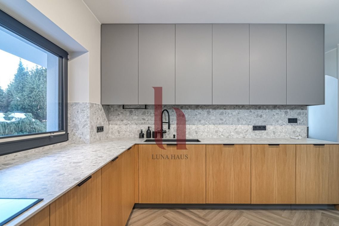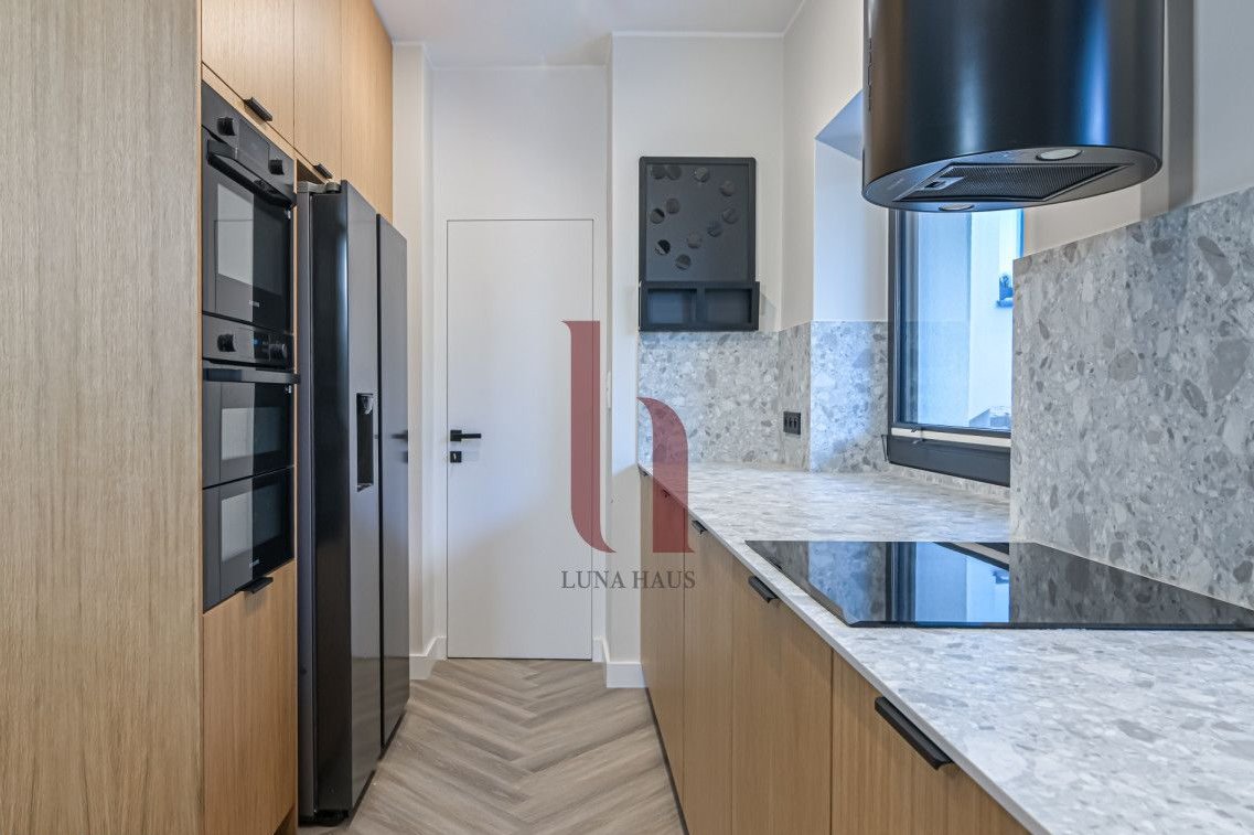 Kitchen - a refined interplay of oak veneer and stone, finished with top-tier appliances