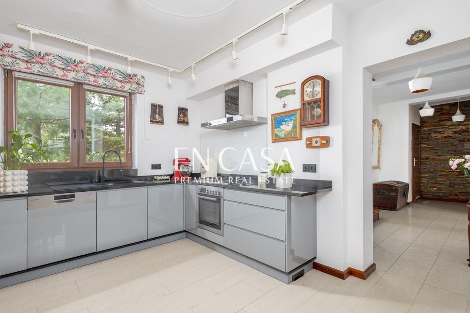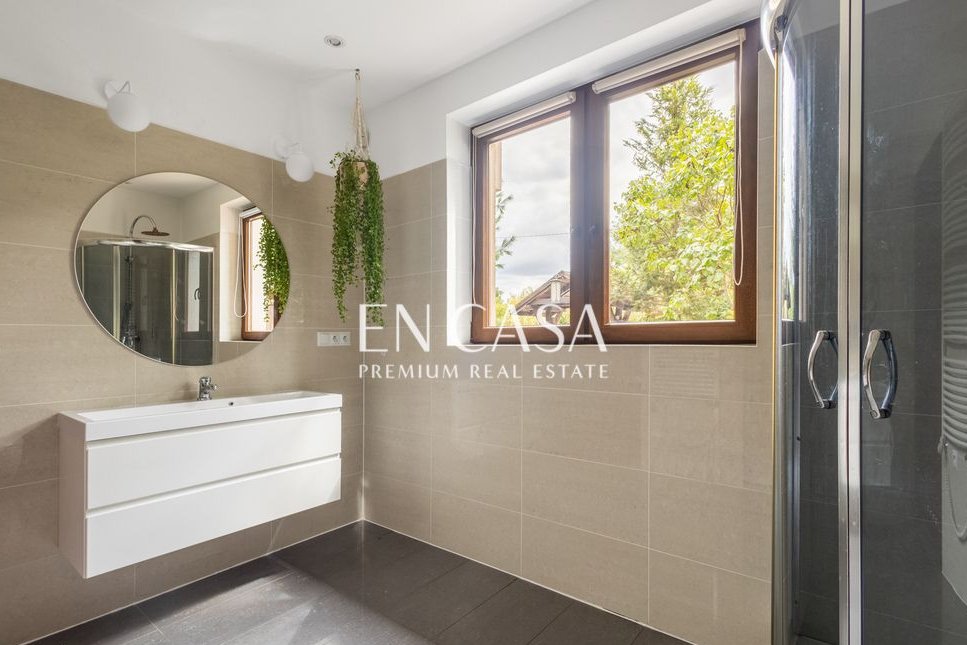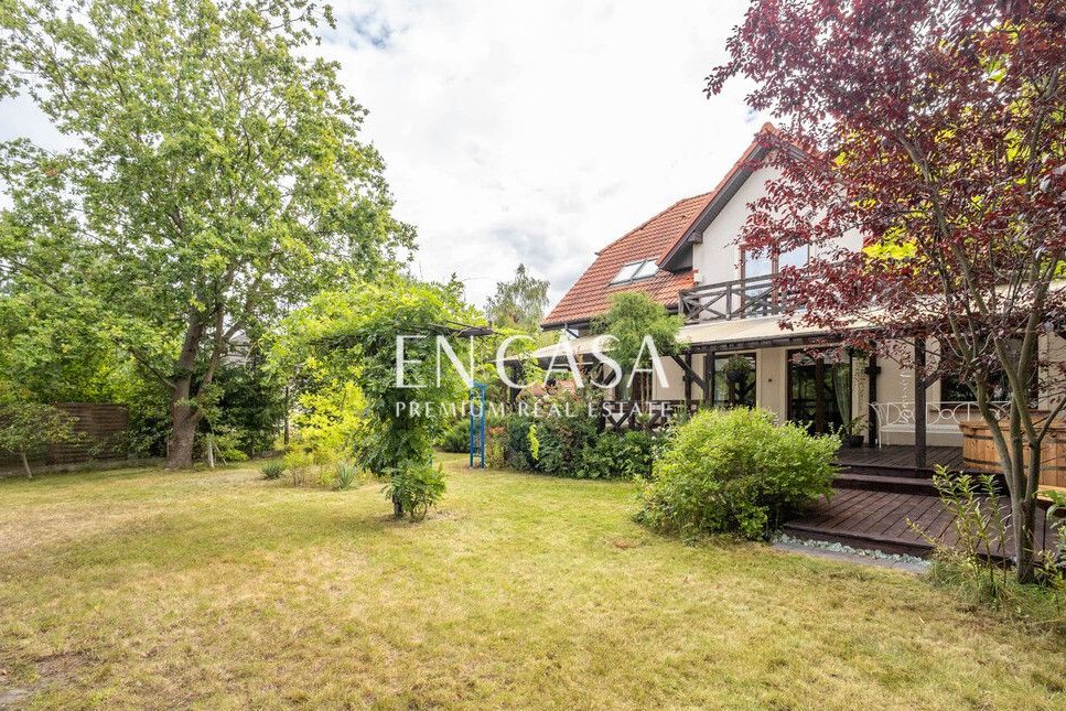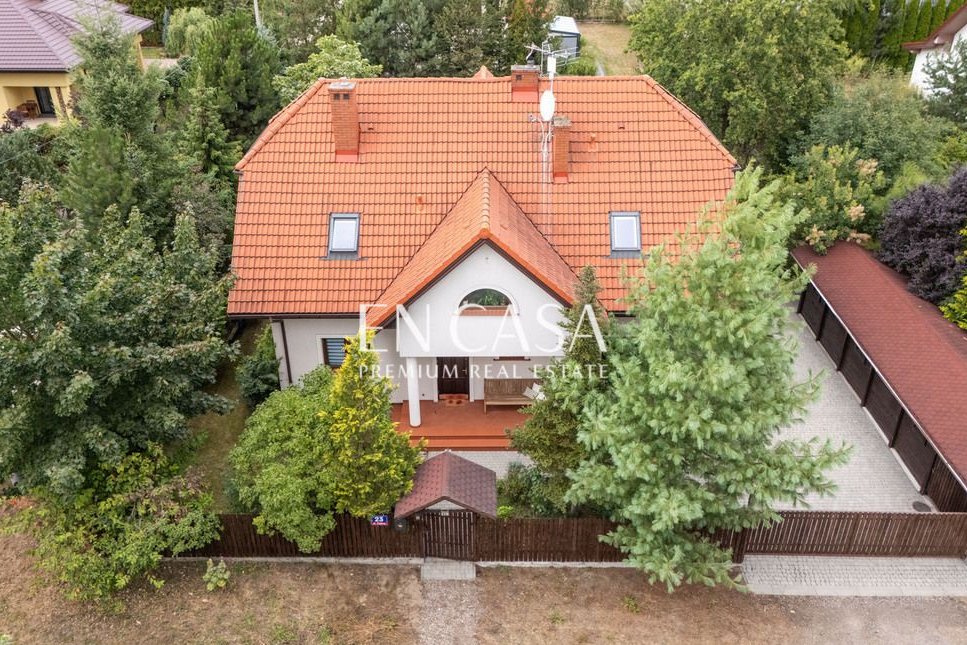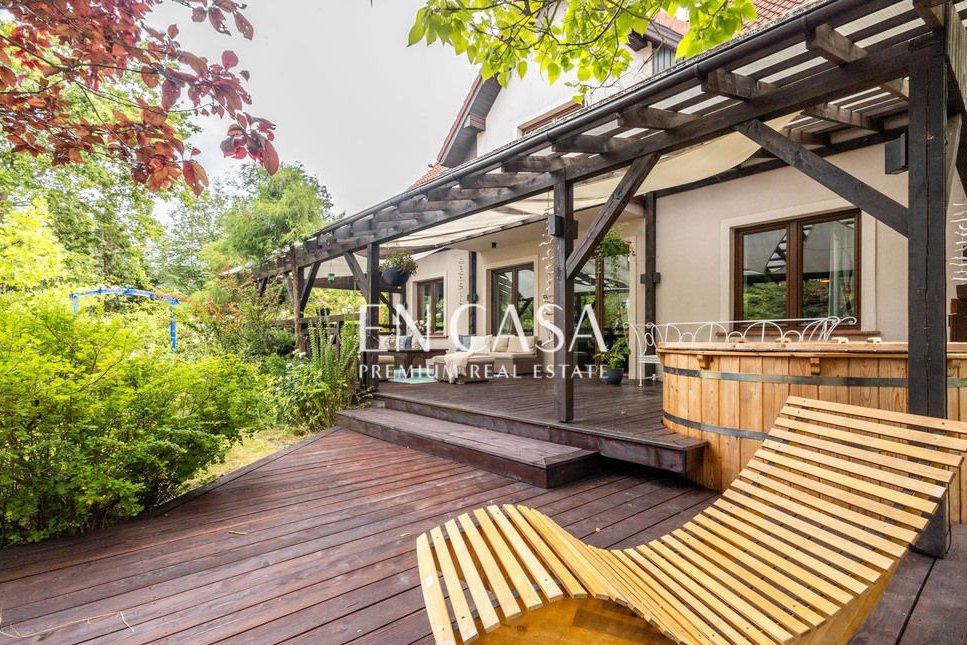 Powierzchnia 215 mkw , działka 950 mkw, 3 sypialnie, nowoczesna kuchnia z pełnym wyposażeniem, strych, ogromny zadaszony taras, SPA z gorącą tradycyjną banią, jacuzzi, ogród w stylu wiejskim.