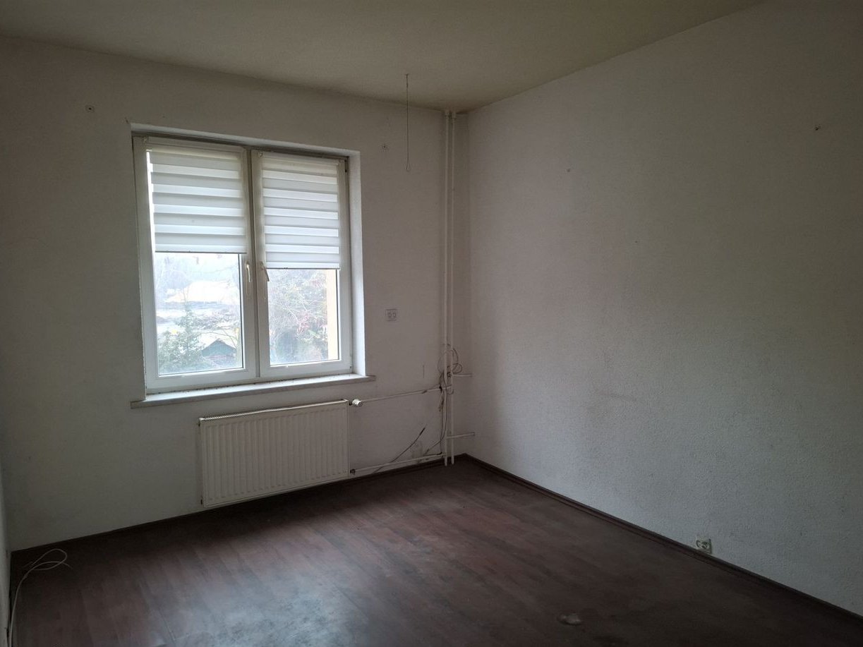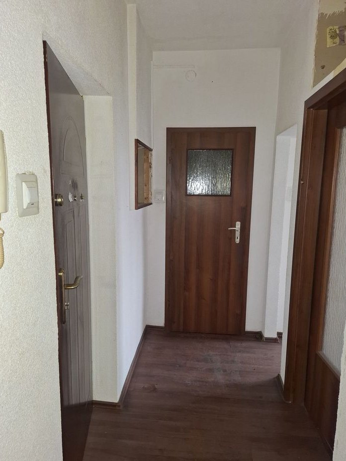 Mieszkanie jednostronne (ekspozycja południowa) w układzie rozkładowym – wejścia do poszczególnych pomieszczeń z przedpokoju.W lokalu brak zabudowy kuchennej; w łazience biały montaż standardowy (kabina prysznicowa, umywalka, muszla ustępowa). Okna PCV starego typu, okna PCV. Lokal wyposażony jest w instalację elektryczną, wodno-kanalizacyjną, gazową, c.o./c.w.u. – ciepłownicza, teletechniczna (domofon).