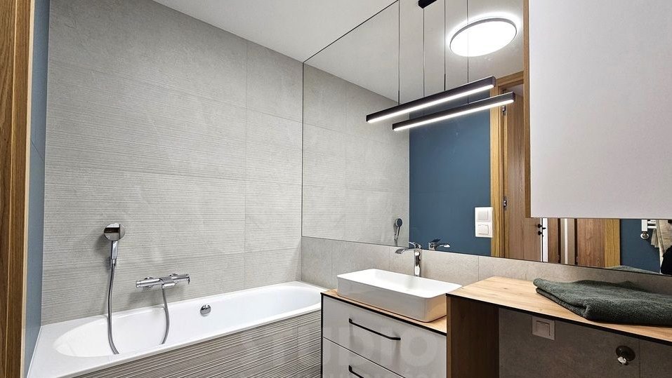 - ŁAZIENKA - pow. 4,8 m2, duże lustro, wanna, umywalka w zabudowie, WC, zabudowa meblowa na wymiar, dużo przestrzeni do przechowywania, miejsce na pralko-suszarkę