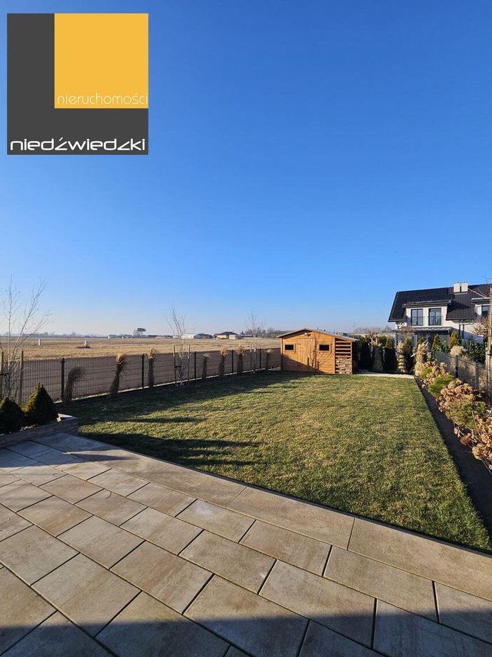 Duży taras stanowi idealne miejsce do spędzania czasu na świeżym powietrzu, a przestronny i pedantycznie utrzymany ogród zapewnia przestrzeń do organizacji spotkań rodzinnych.