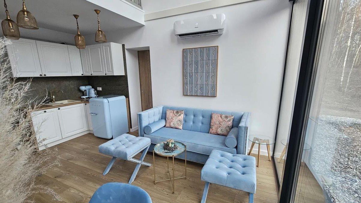 Dodatkowym atutem jest możliwość postawienia kilku kolejnych domków lub stworzenia kameralnego resortu, strefy wellness, glampingu lub rodzinnego siedliska.
