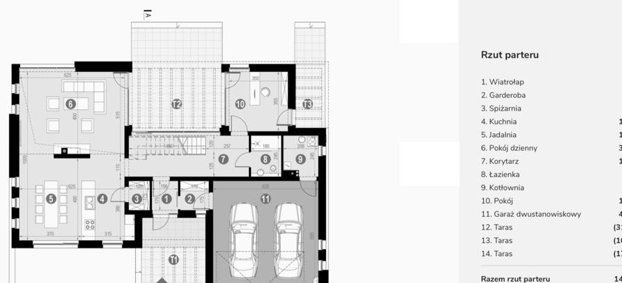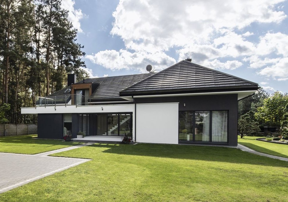 2. Część mieszkalna – nowoczesny dom jednorodzinny Przestronny, nowoczesny dom o powierzchni użytkowej ok. 200 m², zrealizowany według renomowanego projektu HomeKoncept 13EN.