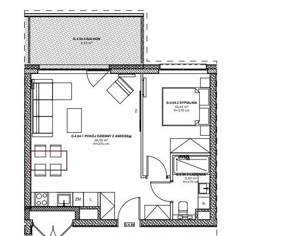 - salon z wyjściem na balkon,