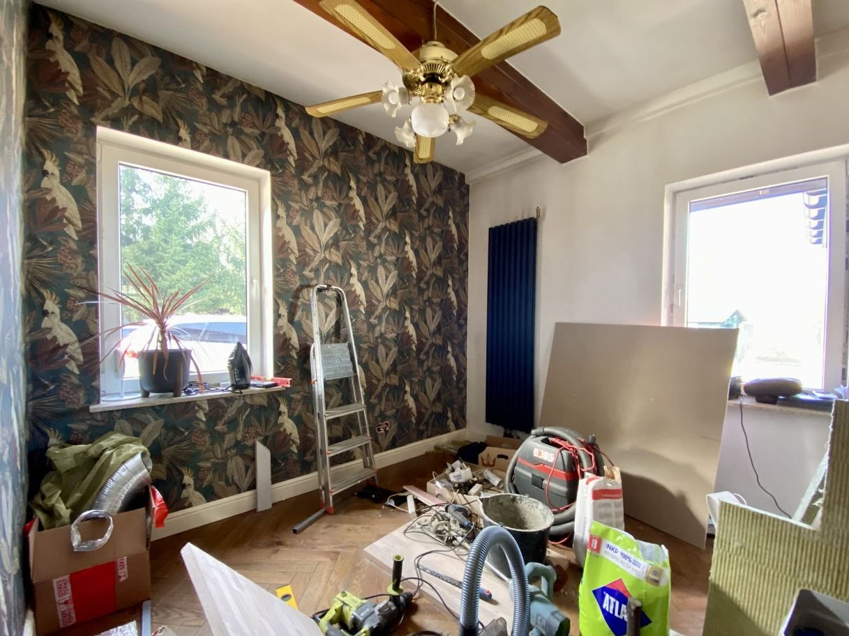 Drewniany dom o powierzchni użytkowej ok. 92 m² (ponad 120 po podłodze) liczący około 80 lat, ale w ostatnich latach gruntownie zmodernizowany. Nowe: ocieplenie wewnętrzne, instalacje elektryczne i hydrauliczne, szambo, dach oraz kominek z płaszczem wodnym (efektywne ogrzewanie). Funkcjonalny układ pomieszczeń, gotowy do zamieszkania po dociepleniu elewacji i drobnych wewnętrznych zmianach.