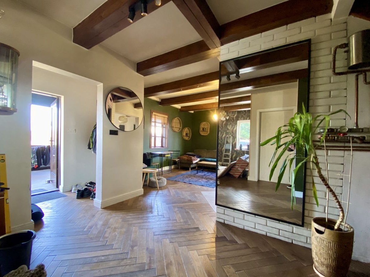Na parterze przestronny salon z aneksem kuchennym, łazienka oraz jeden pokój