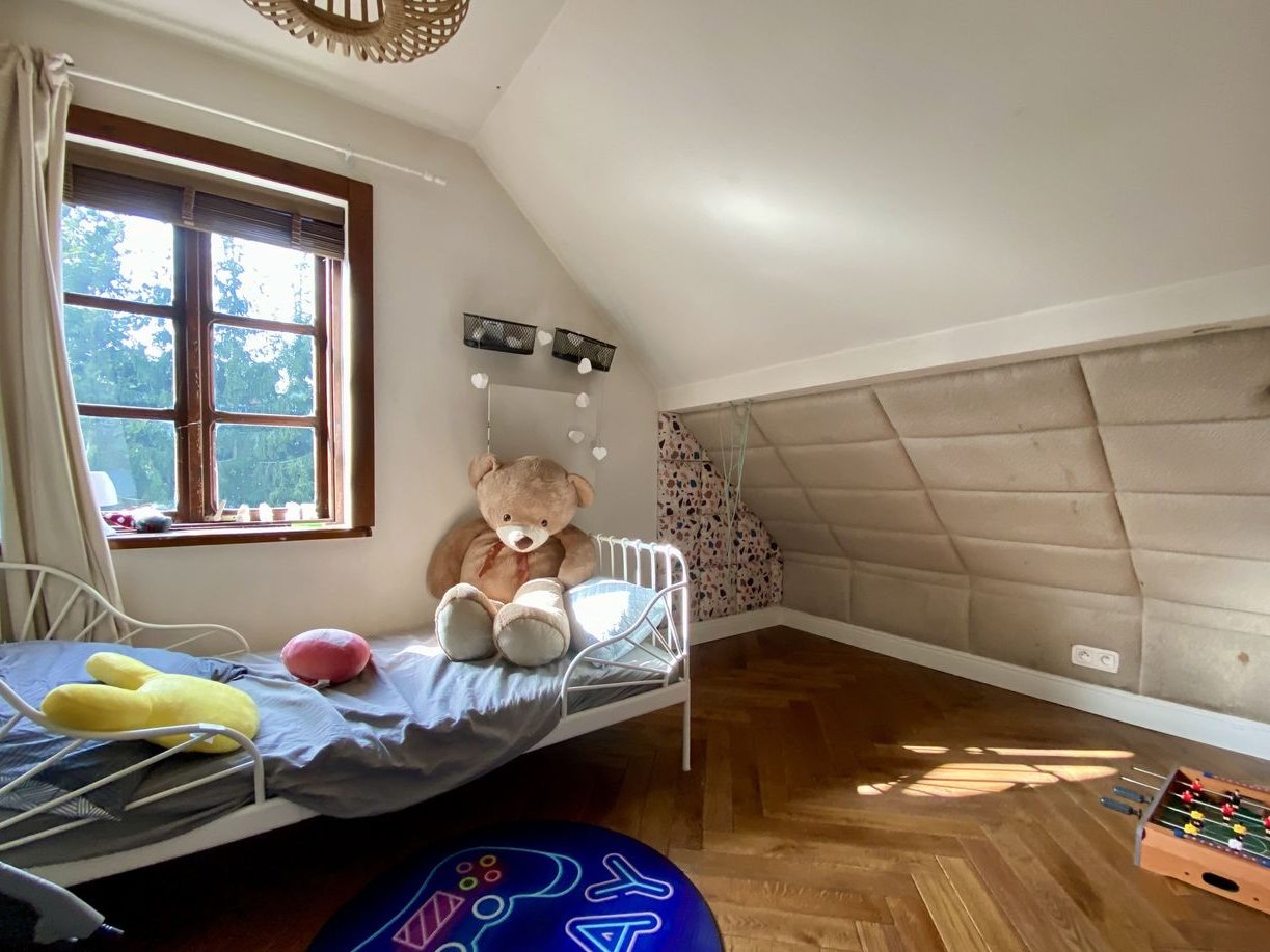 Poddasze użytkowe składa się z dwóch sypialni oraz jednego pomieszczenia ze skosami, mogącego pełnić funkcję małej sypialni lub garderoby, a także toalety.