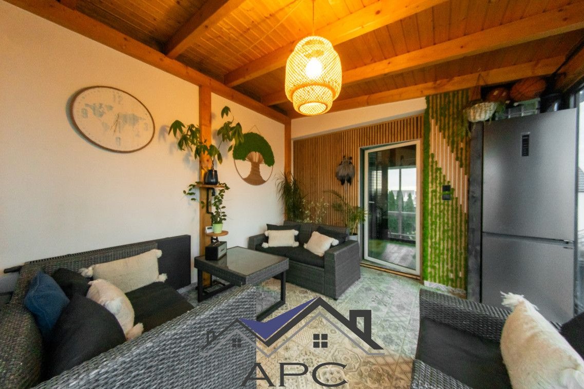 Zadaszony taras w formie ogrodu zimowego to jeden z najmocniejszych atutów tej nieruchomości.