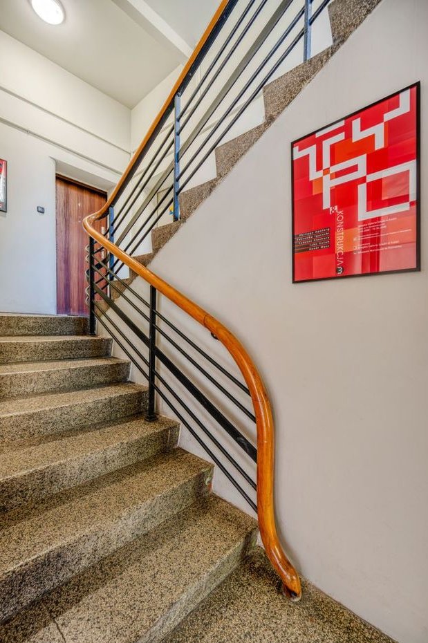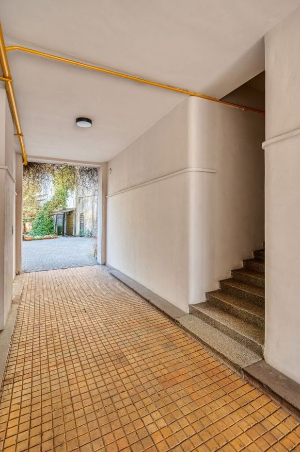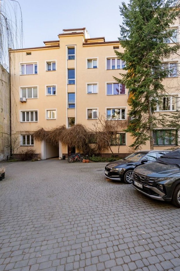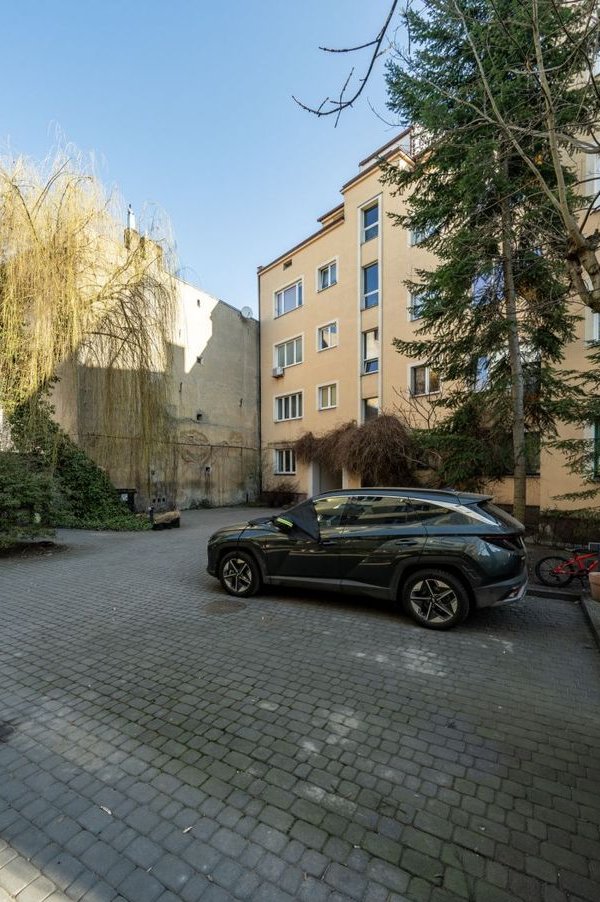 Kamienica wyróżnia się uporządkowaną, modernistyczną bryłą, reprezentacyjnym wejściem oraz zadbanymi częściami wspólnymi. Elegancka klatka schodowa i kameralny dziedziniec podkreślają prestiżowy charakter budynku, a miejsce postojowe wewnątrz posesji zapewnia komfort, który w ścisłym centrum miasta stanowi prawdziwy atut.