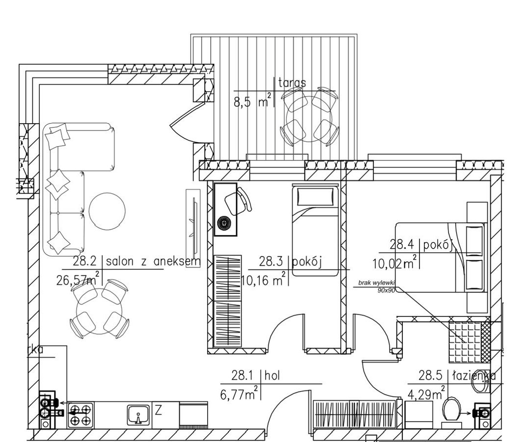 Na metraż 57,50 m2 składają się:
