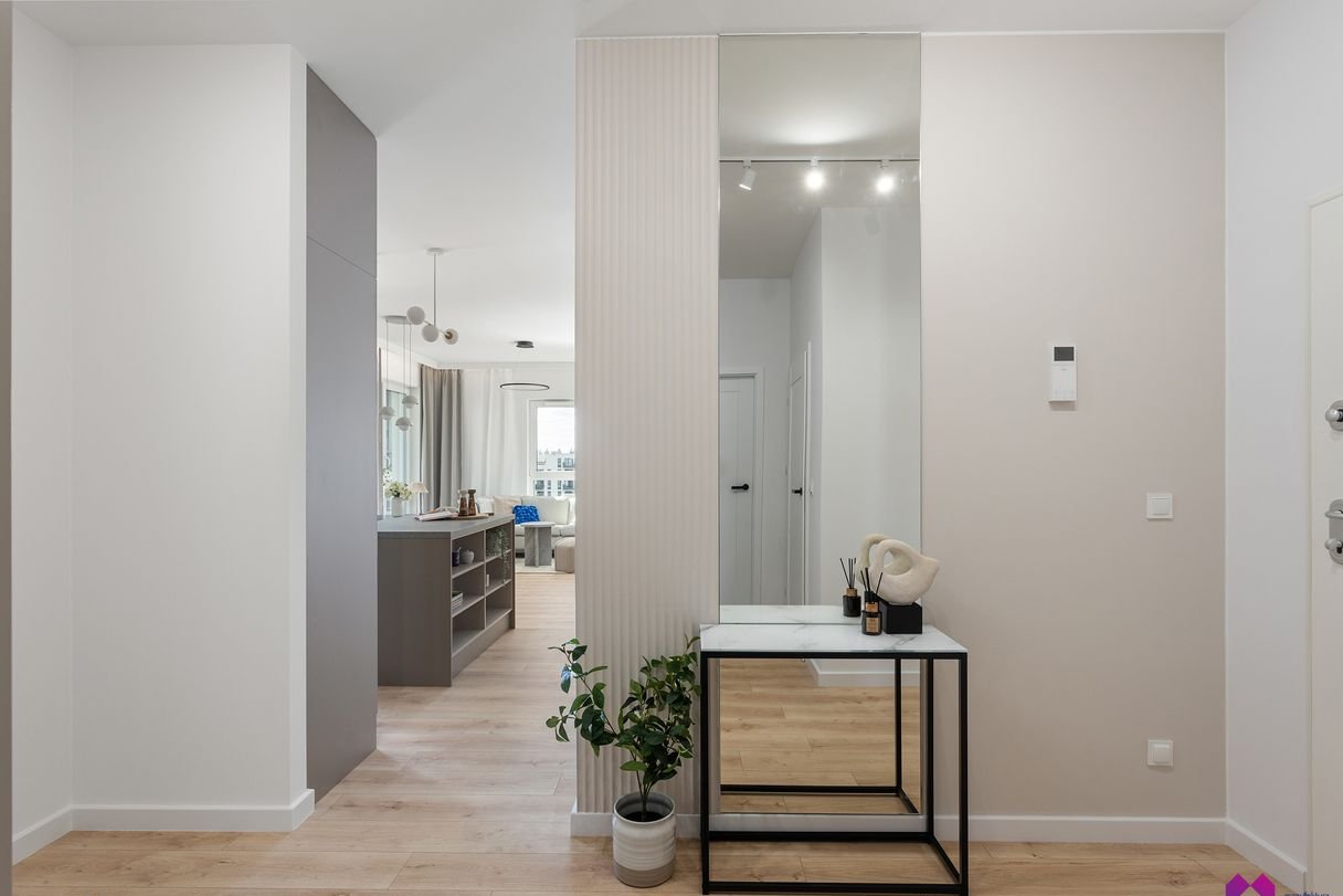 Dodatkowo w mieszkaniu znajduje się również garderoba z miejscem przeznaczonym pod pralkę.
