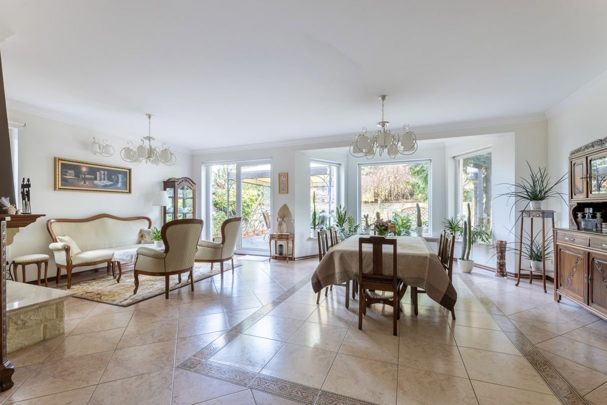 Nieruchomość wykończona w wysokim standardzie, z użyciem naturalnych materiałów: drewna, marmuru, ceramiki oraz szlachetnego kamienia. Idealna propozycja dla osób poszukujących komfortowego, funkcjonalnego i ponadczasowego domu w spokojnym, zielonym otoczeniu.