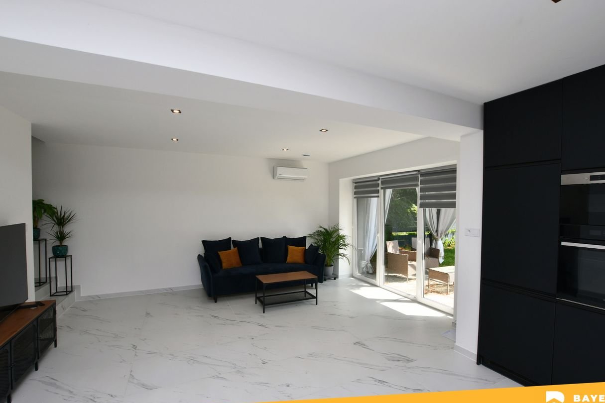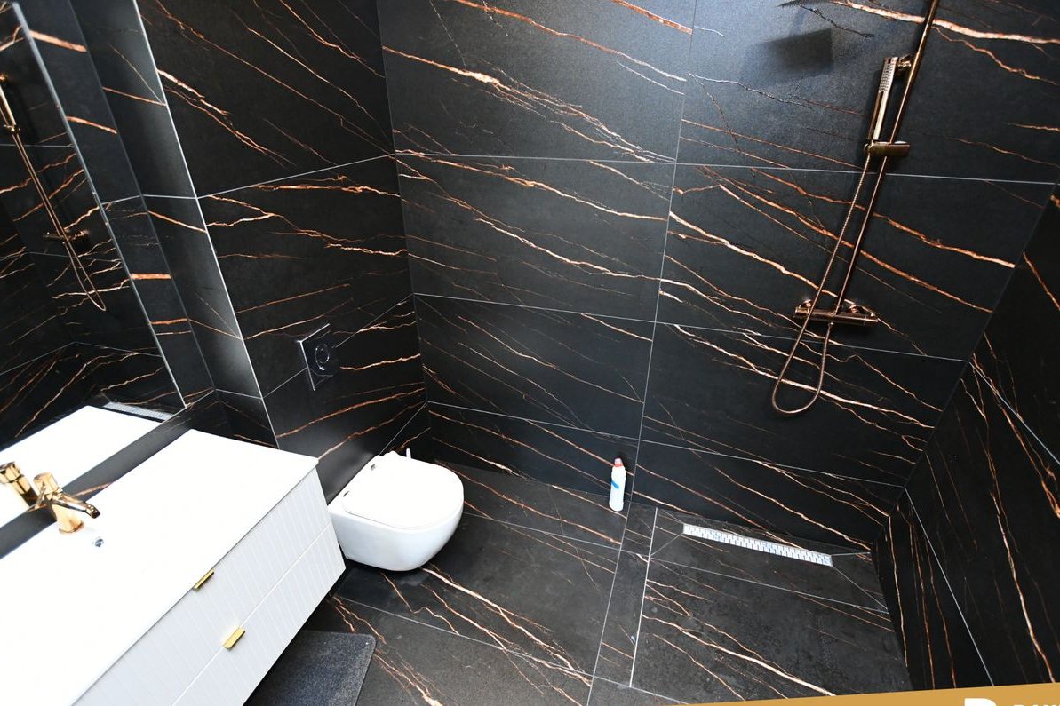 Nieruchomość zachwyca ogromnym salonem z aneksem kuchennym, w którym naturalne światło podkreśla elegancję wnętrza, a otwarta przestrzeń sprzyja spotkaniom z rodziną i przyjaciółmi.