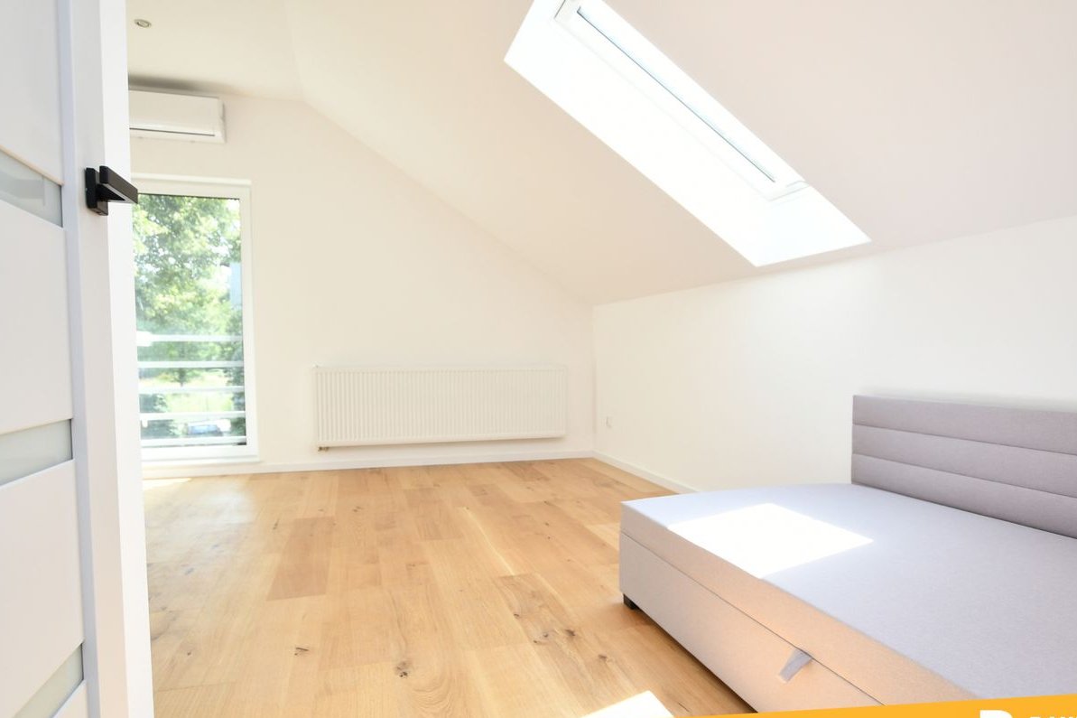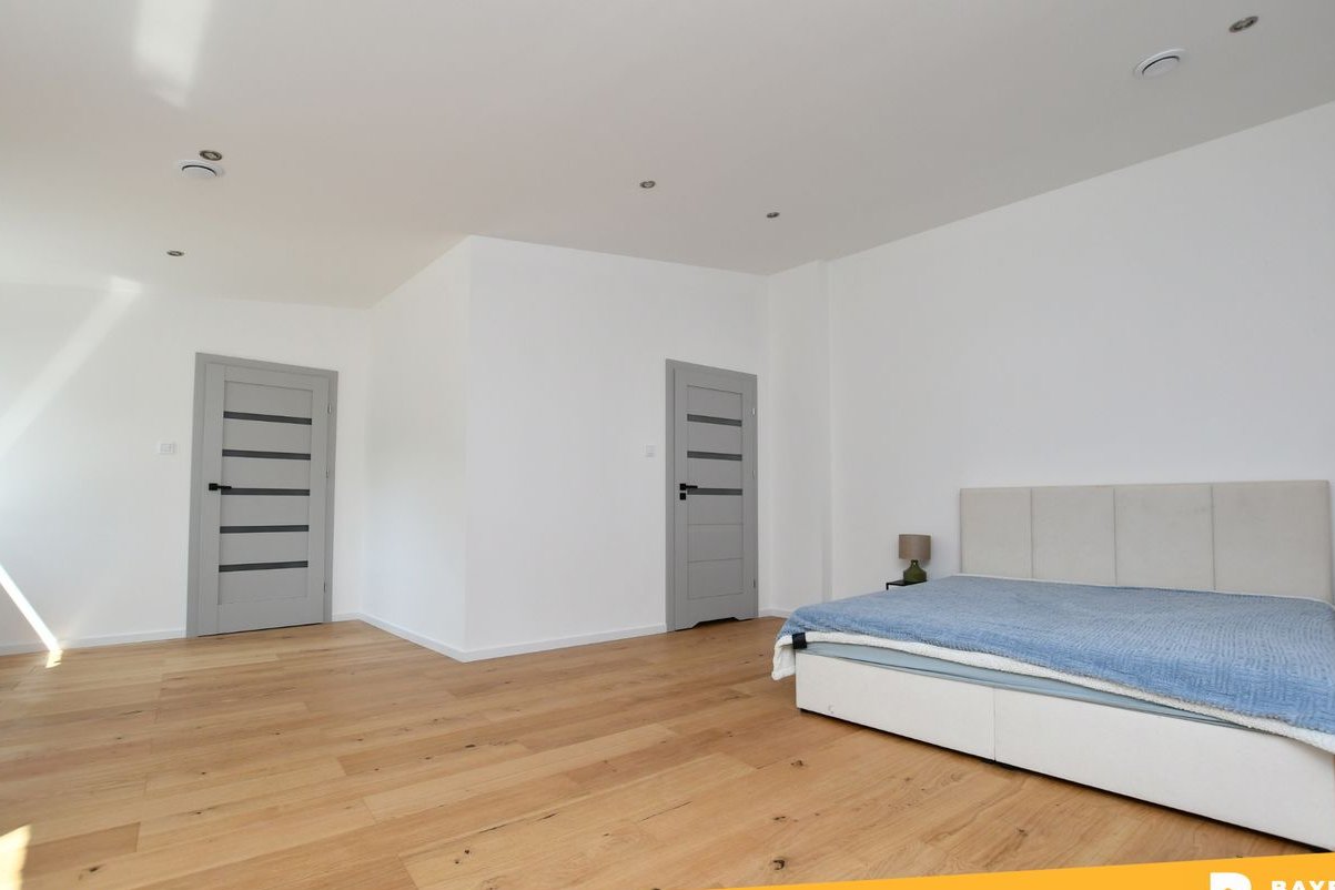 Dom oferuje 4 funkcjonalne pokoje oraz 3 nowoczesne łazienki, w tym jedną prywatną, przynależną do imponującej, dużej sypialni.