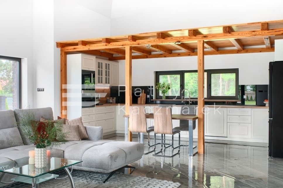 Jego ogromnym atutem jest przestrzenna część dzienno - wypoczynkowa. Ilość okien gwarantuje bardzo dobre doświetlenie i sprawia że salon zyskuje słoneczną przytulność. Widok z kuchennego okna na las przynosi ukojenie.
