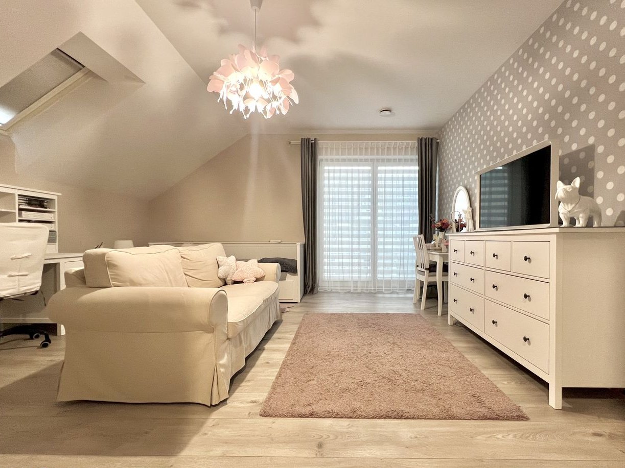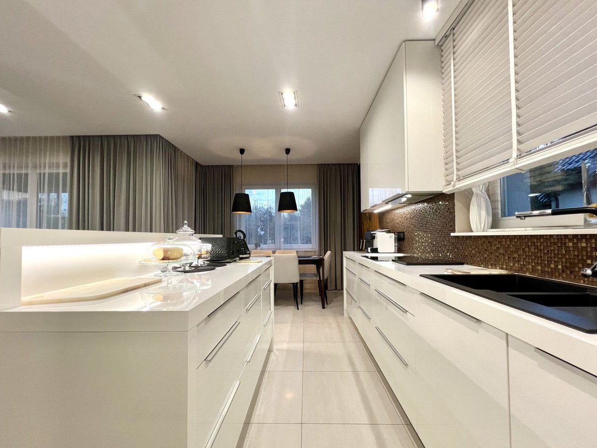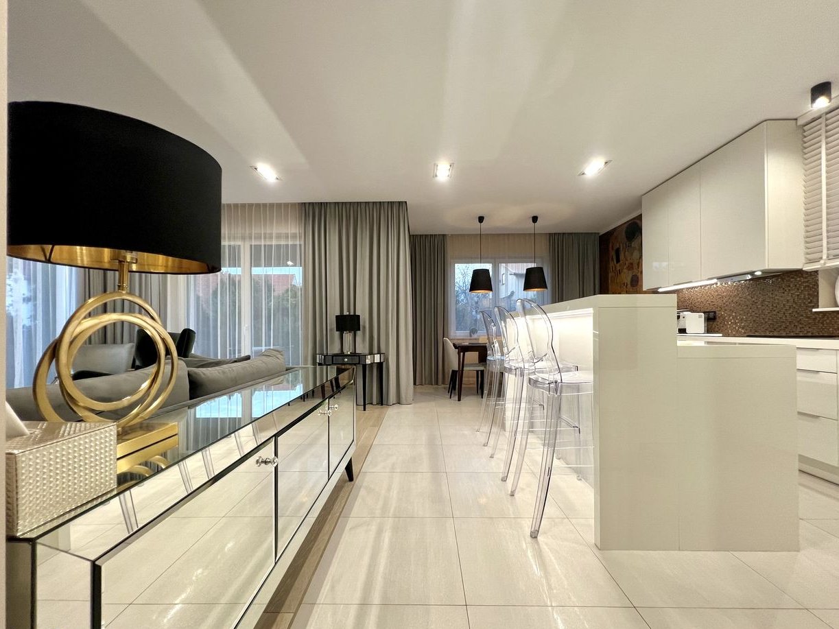 Istnieje możliwość połączenia mieszkania z główną częścią domu – idealne rozwiązanie pod gabinet, biuro, pokój gościnny lub dla rodziny wielopokoleniowej.