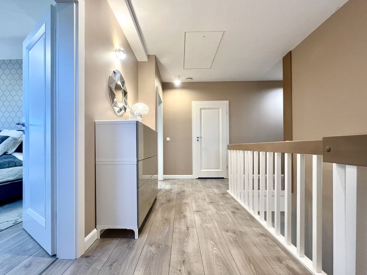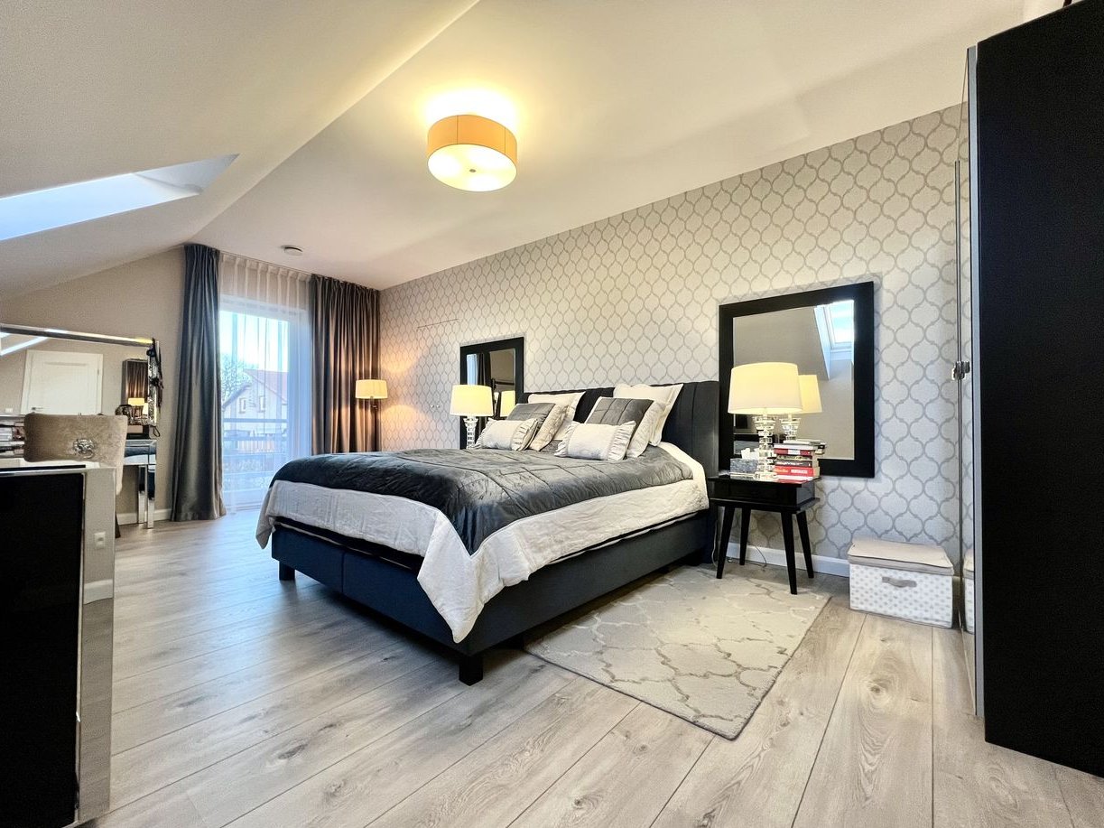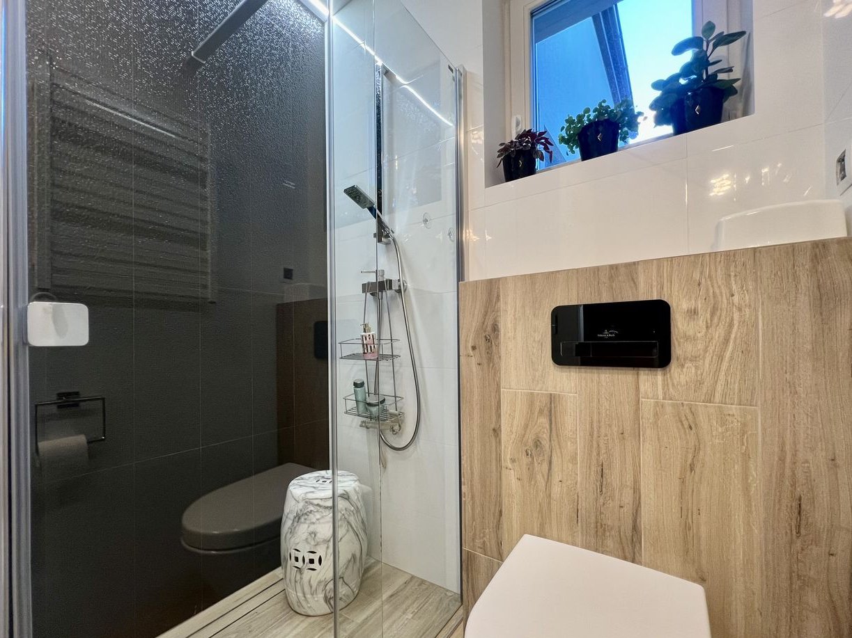 Istnieje możliwość połączenia mieszkania z główną częścią domu – idealne rozwiązanie pod gabinet, biuro, pokój gościnny lub dla rodziny wielopokoleniowej.