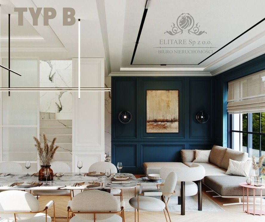 - przestronny salon z otwartą kuchnią 43,95 m2 z wyjściem na taras i ogród,