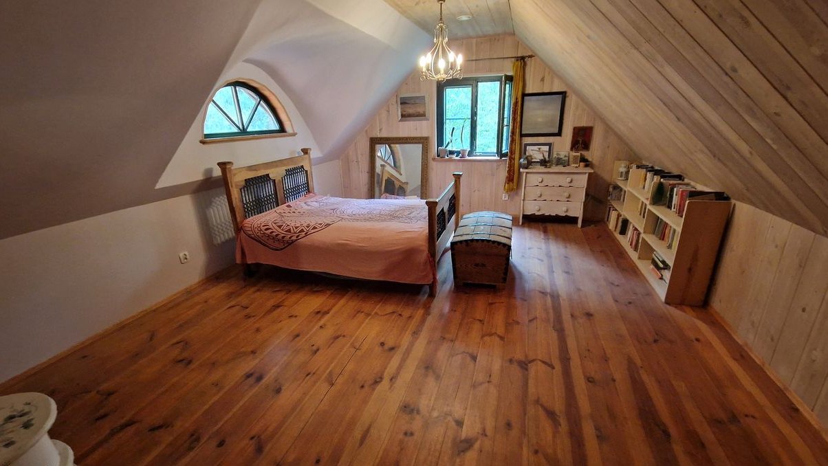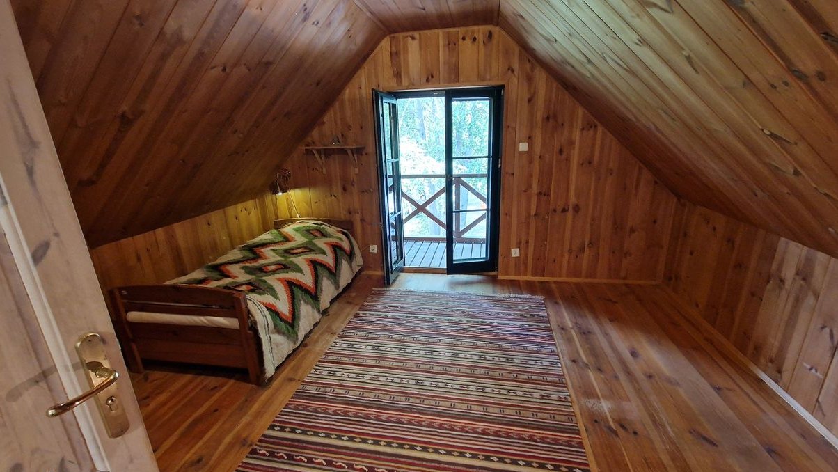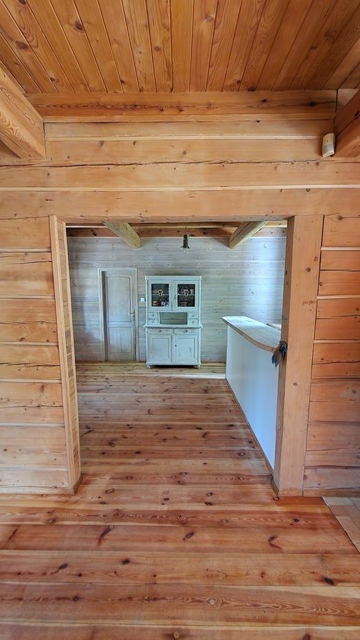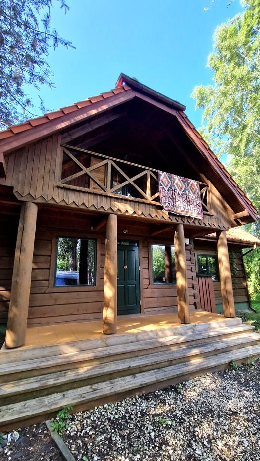 Ten wyjątkowy dom został zbudowany z bali drewnianych, dzięki czemu oddycha i tworzy niepowtarzalny mikroklimat. Stoi na solidnych fundamentach, jest porządnie ocieplony, co gwarantuje komfort przez cały rok.