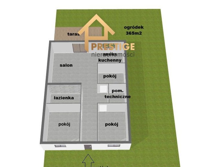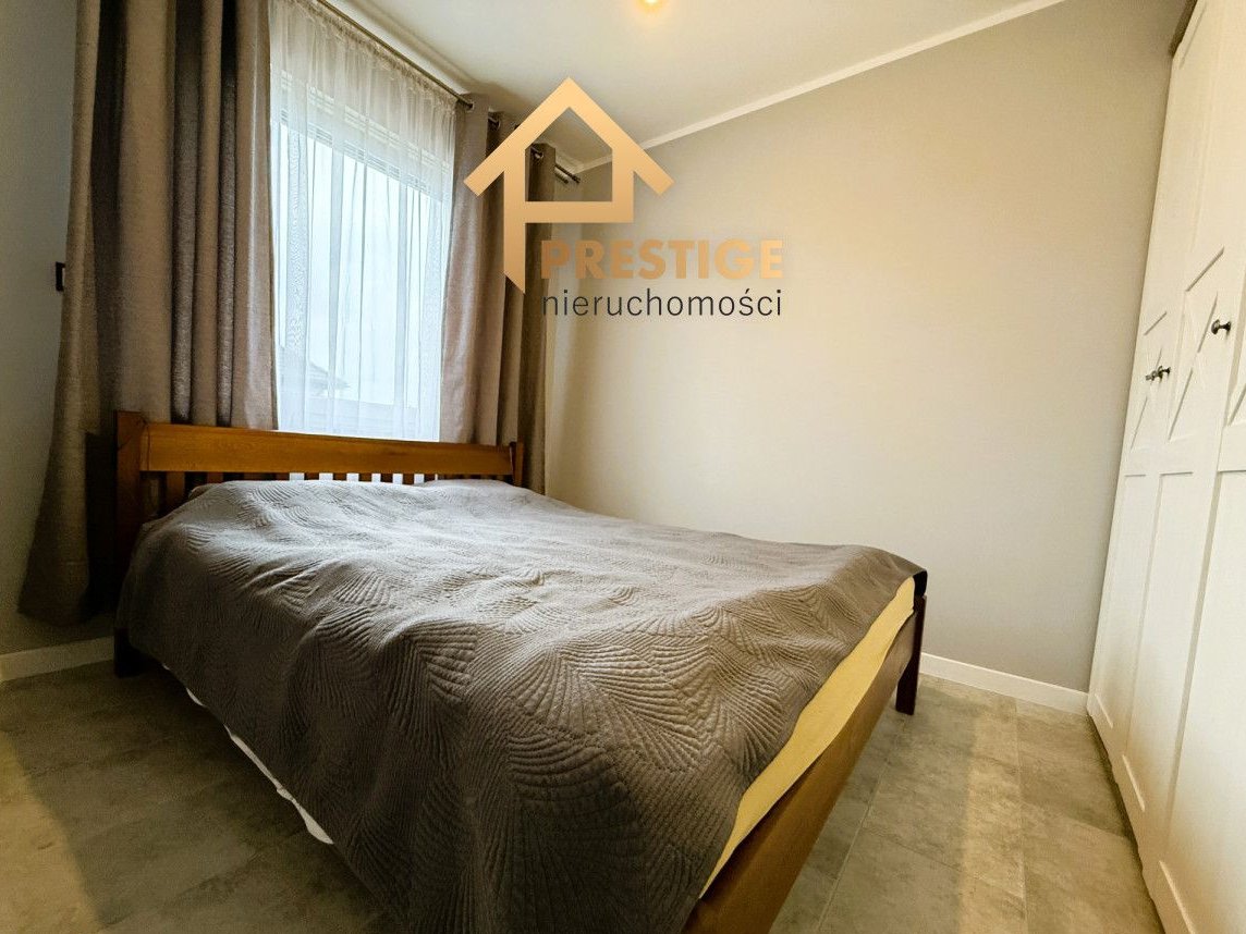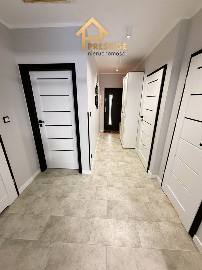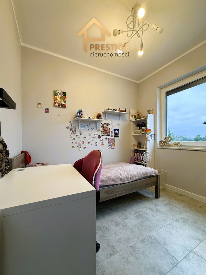 Lokal został zaprojektowany z myślą o maksymalnej funkcjonalności i składa się z: wiatrołapu, korytarza, przestronnego salonu z wyjściem bezpośrednio do ogrodu, aneksu kuchennego, trzech niezależnych pokoi, łazienki i pomieszczenia technicznego. Dodatkową przestrzeń magazynową stanowi poddasze nieużytkowe. Wnętrze wykończone w bardzo dobrym standardzie i utrzymane w nowoczesnym minimalistycznym stylu. Ściany pokryte gładziami, na podłogach w całym lokalu płytki ceramiczne.