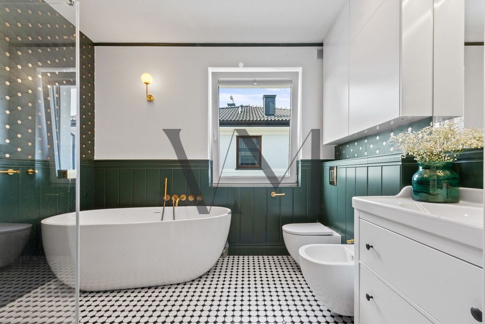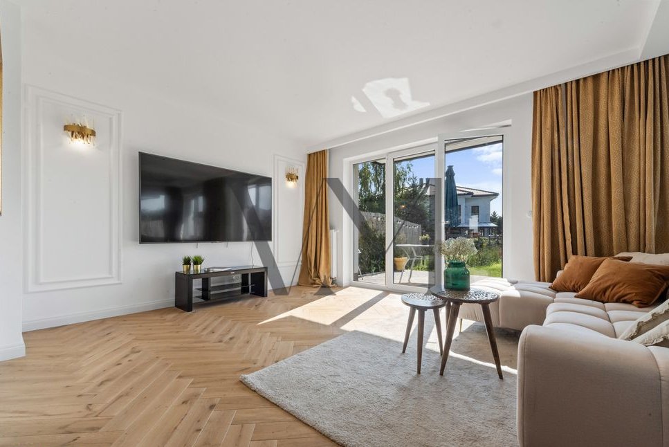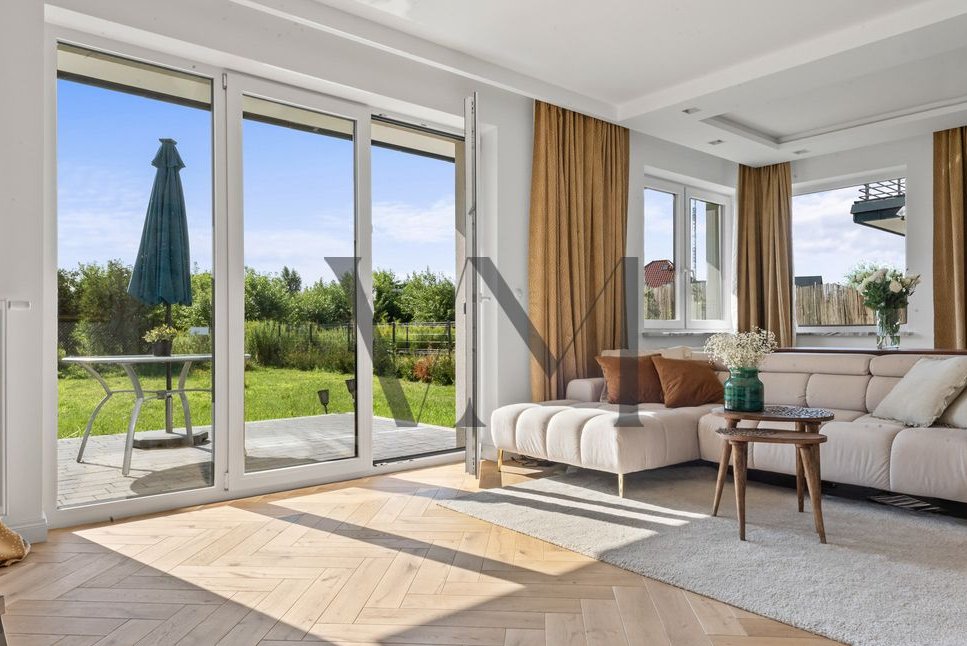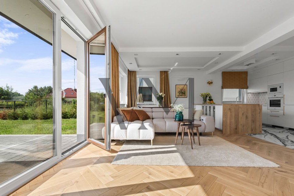 Standard wykończenia: Dom wykończony w wysokim standardzie. Na podłodze w salonie piękna deska dębowa natomiast w kuchni i korytarzu gres hiszpański. Funkcjonalna kuchnia, w pełni wyposażona, w łazienkach ceramika znanych marek, baterie podtynkowe. Wnętrze domu urządzono w nowoczesnym stylu z dbałością o detale i wygodę. Ciepłe kolory, naturalne materiały tworzą przytulną atmosferę.