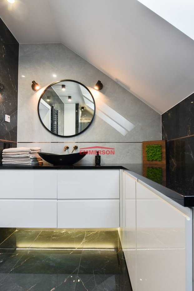Wygodna garderoba, nowoczesne łazienki zapewniają komfort codziennego życia. Przed domem trzy miejsca parkingowe.
