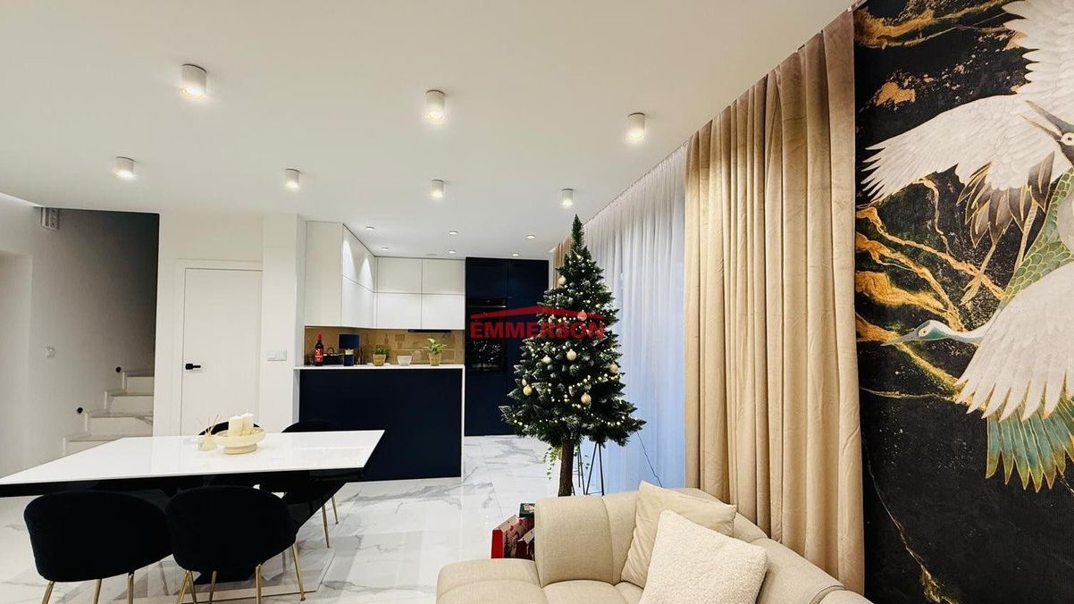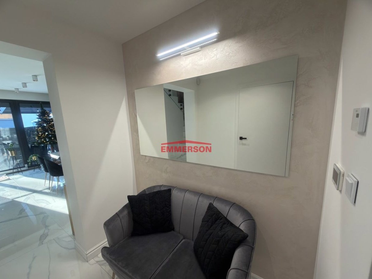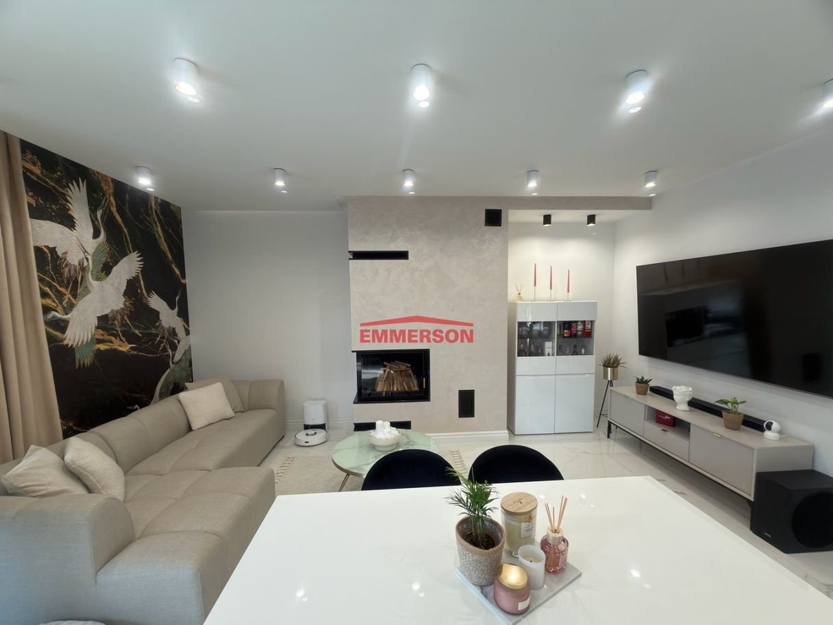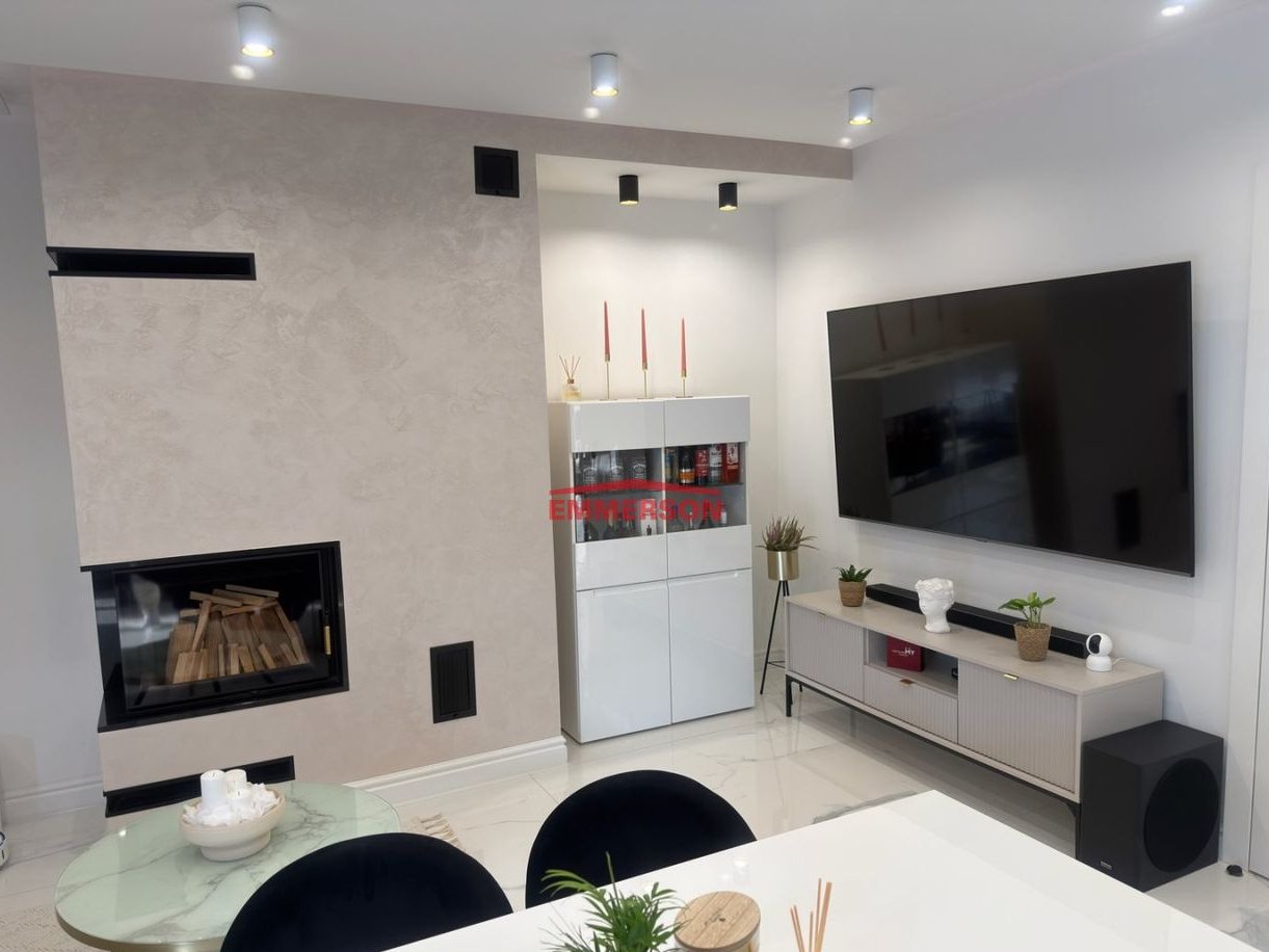 Wnętrze jest spójne i utrzymane w wysokim standardzie, z dbałością o detale. W salonie znajduje się kominek spełniający obecne, wymagane normy.