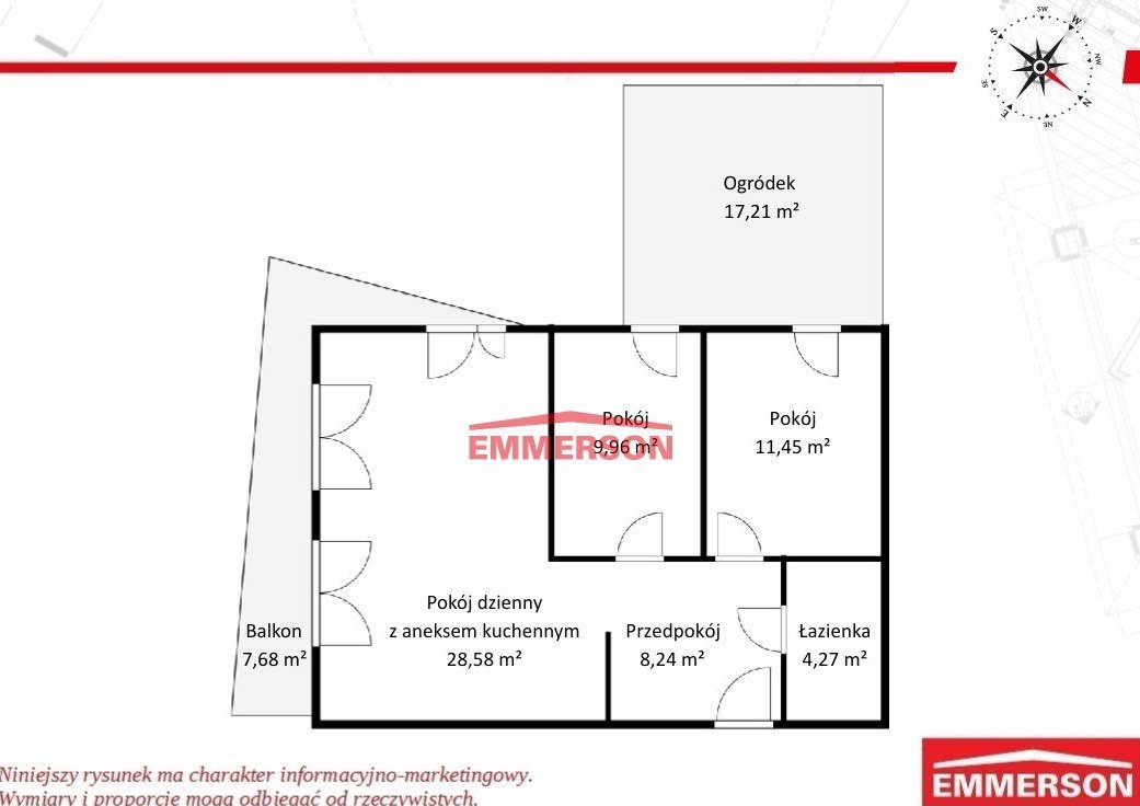 Przestronne i jasne mieszkanie z balkonem i ogrodem 17m2