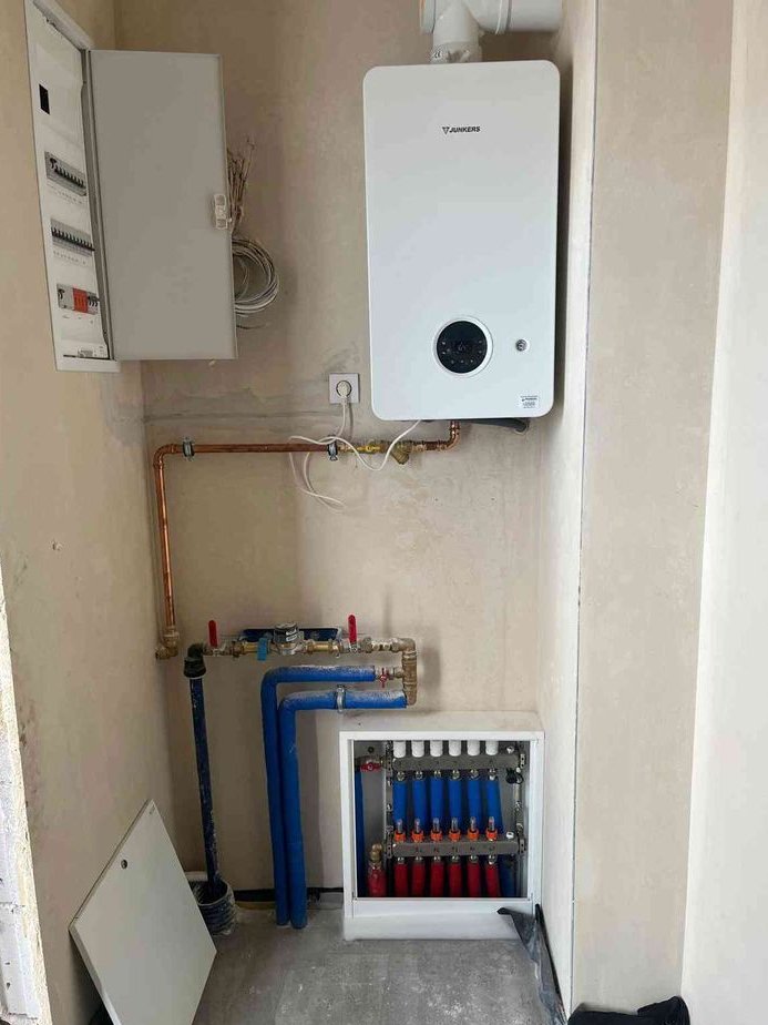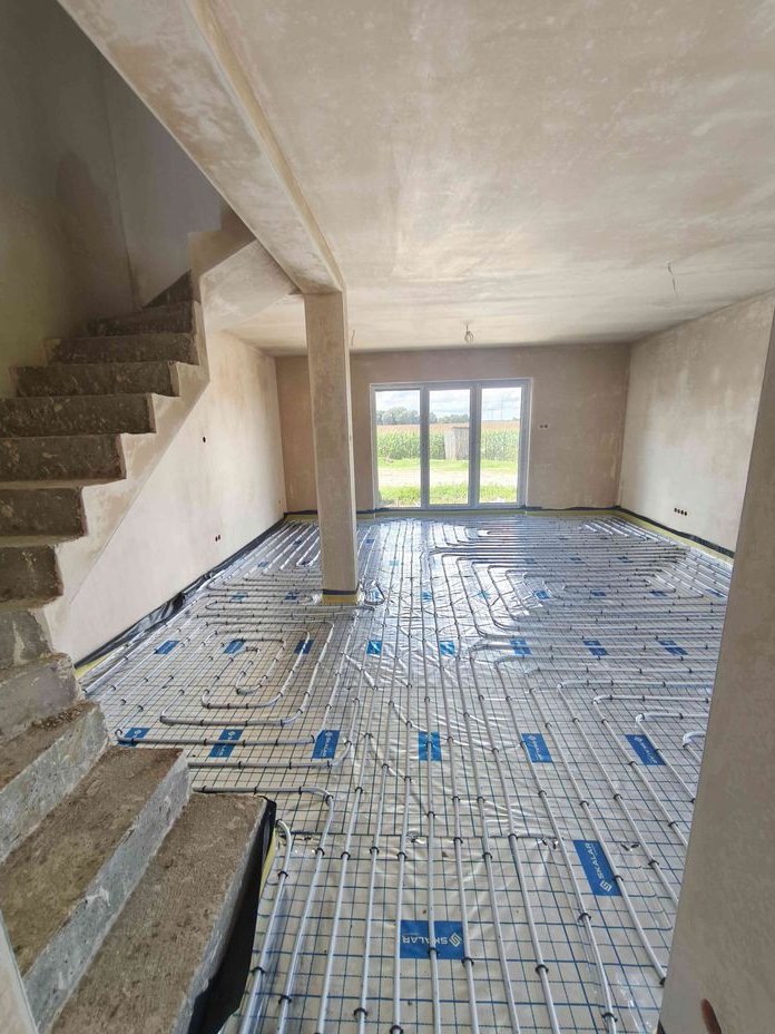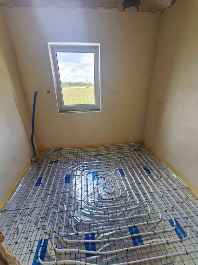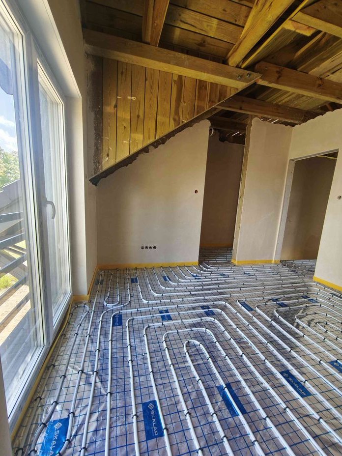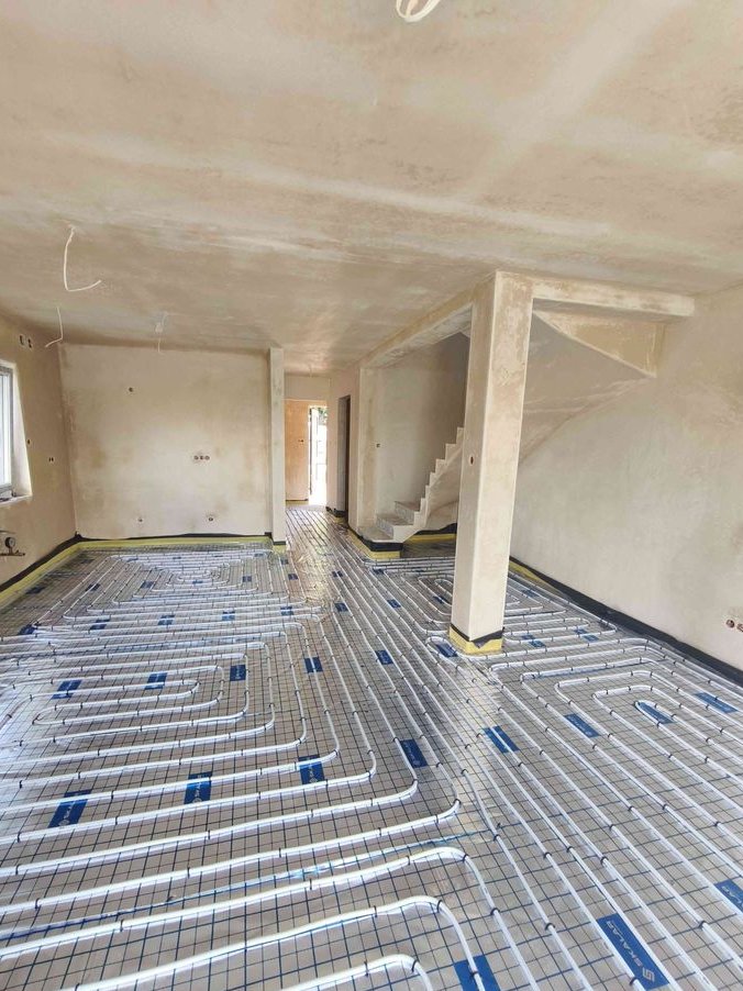 Ogrzewanie gazowe+podłogówka na całości. Rolety na całości elektryczne, szambo.