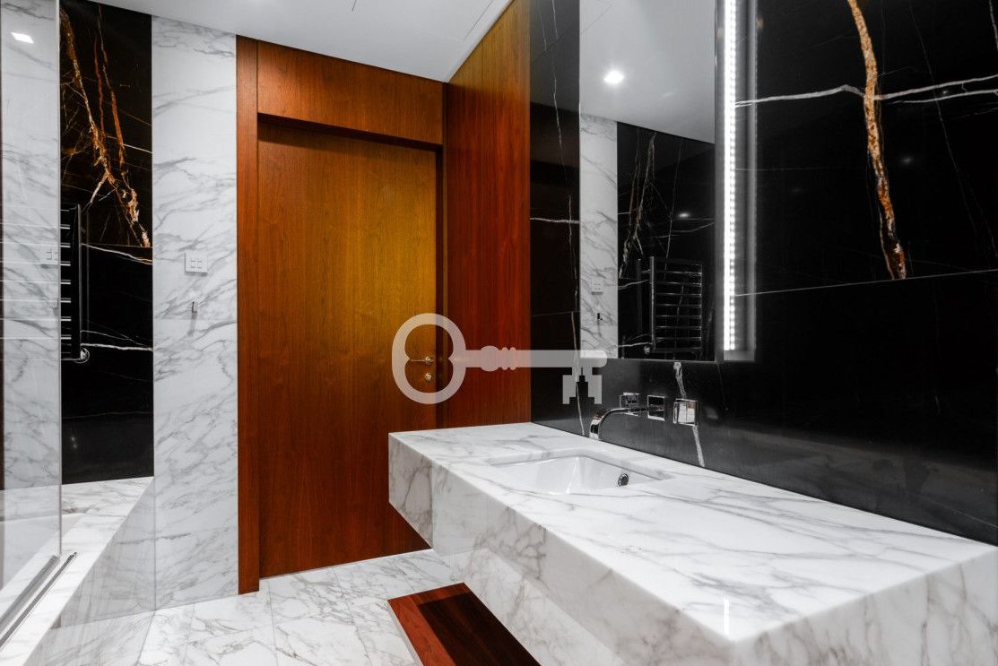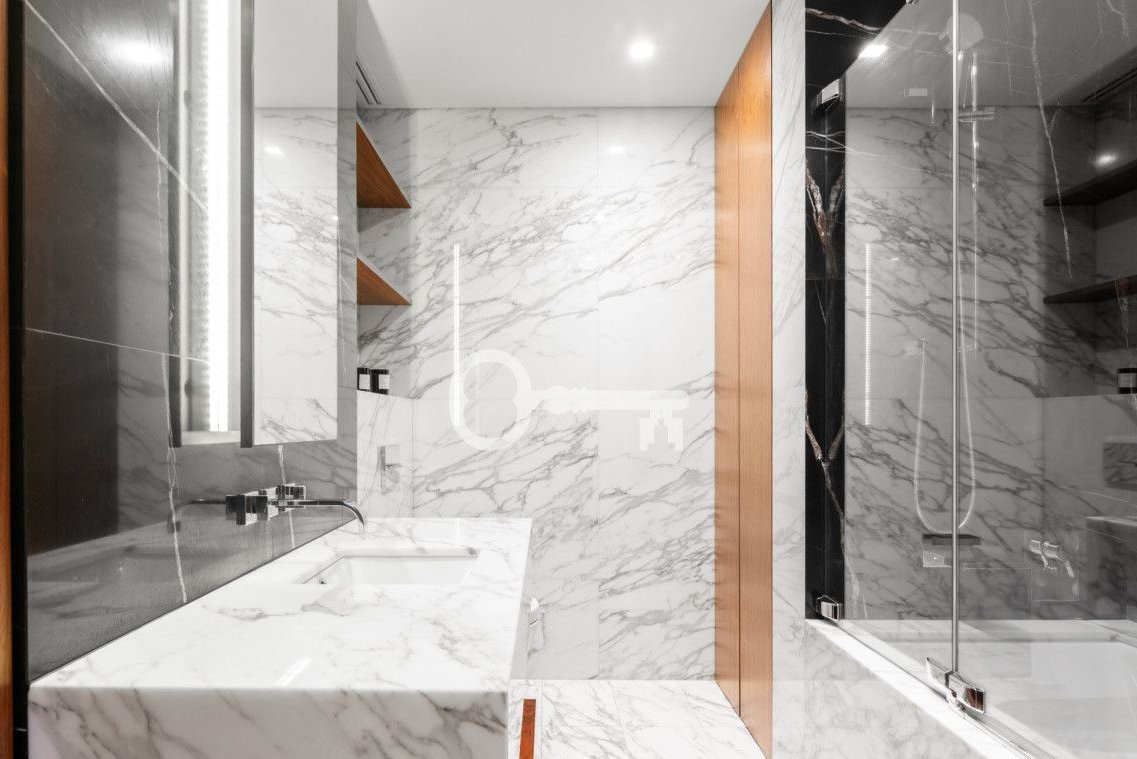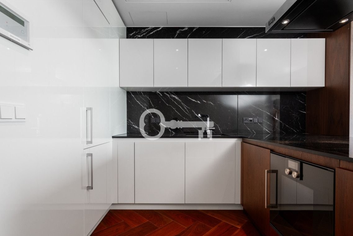 Apartament wykończony został w najwyższym standardzie, z dbałością o każdy detal. Nowoczesna architektura wnętrza łączy elegancję z funkcjonalnością, oferując komfort oraz wyjątkową atmosferę. Panoramiczne okna gwarantują niezrównane widoki na Warszawę, które zachwycają zarówno o poranku, jak i podczas wieczornych zachodów słońca.