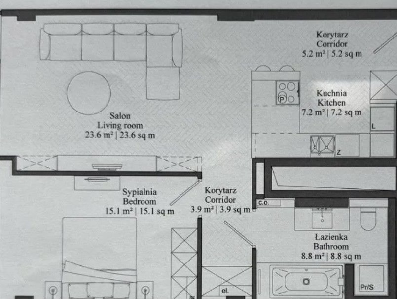 * Large parking space in the garage available at an additional cost of PLN 350,000.