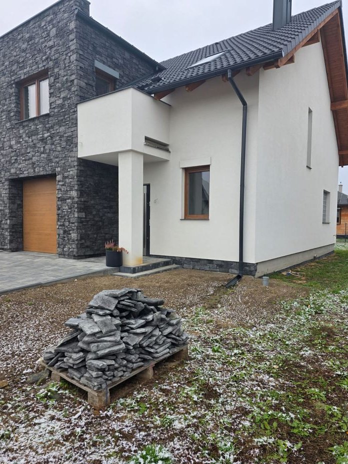 -Elewacja z kamienia elewacyjnego(wykusze + wysunięcie budynku).