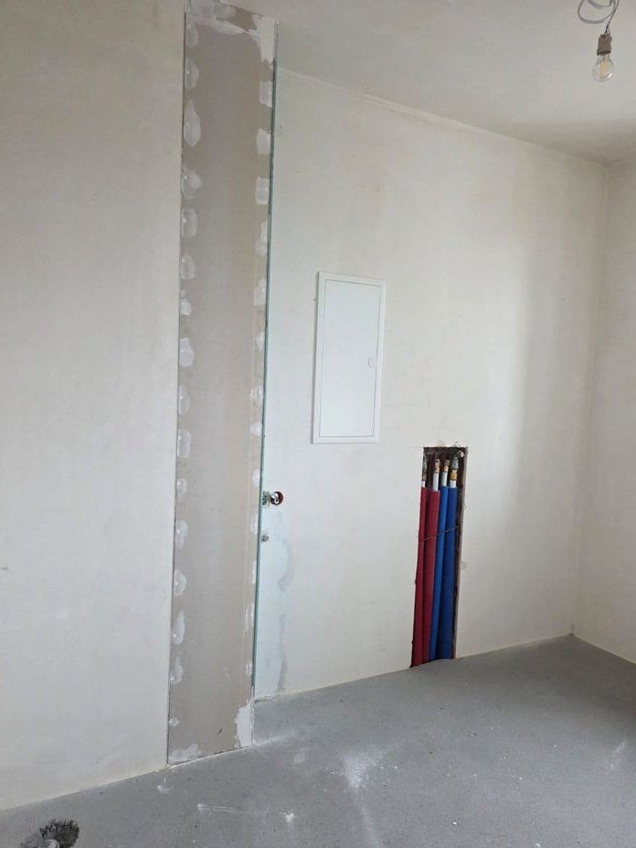 -korytarz w wnęką na szafę i przejściem do garażu.