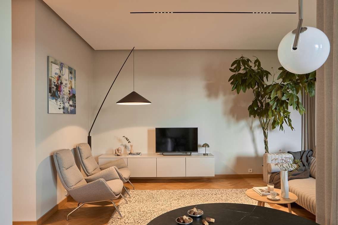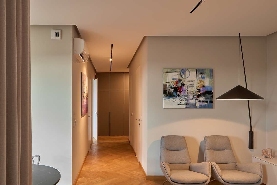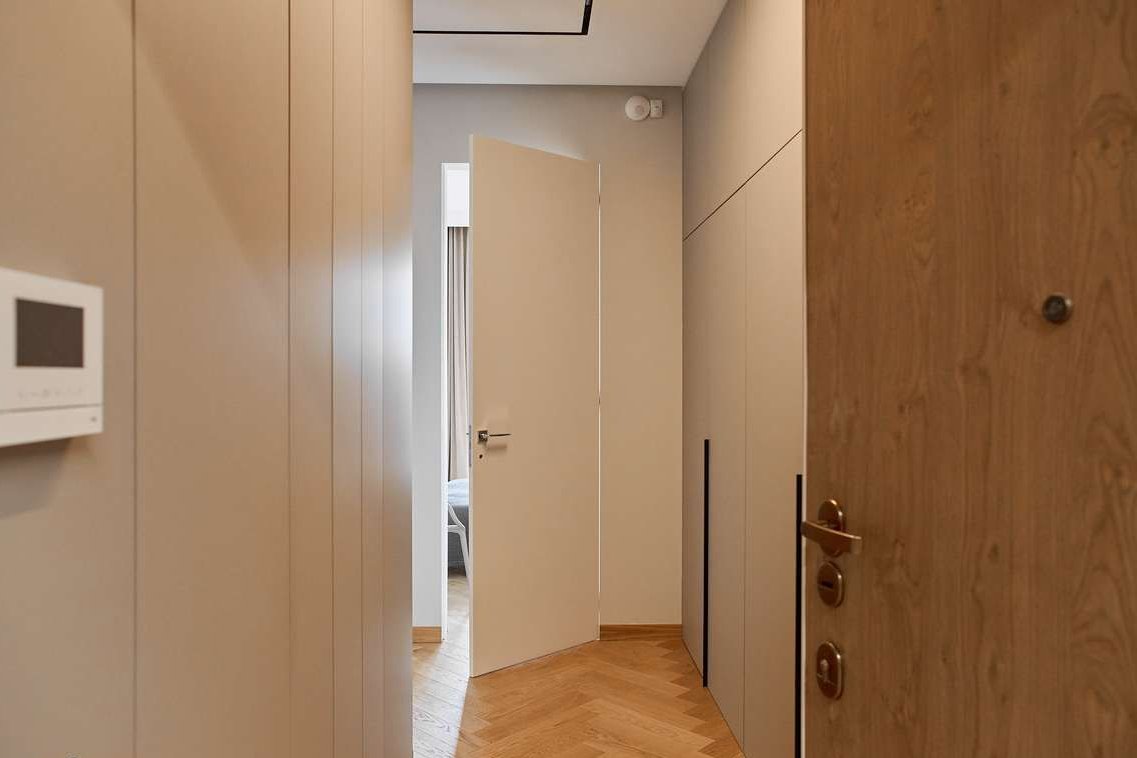 Mieszkanie jest wykończone w wysokiej jakości materiałami (podłoga - dąb jodełka francuska, grzejniki kanałowe, blaty- kamień naturalny, wysoki jakości oświetlenie Xal,Vibia, Flos ), w pełni zautomatyzowane z możliwością sterowania z dowolnego miejsca na świecie smart home.