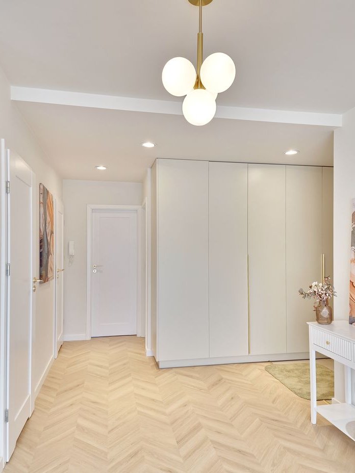 Duużo zabudów na wymiar – szafy do sufitu, wszystko projektowane indywidualnie (spójrzcie na tę szafę na zdjęciu! ).