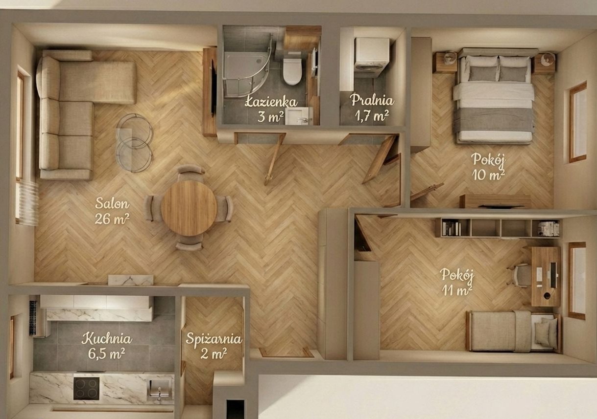 Na niespełna 61m udało nam się stworzyć układ, którego próżno szukać u deweloperów: