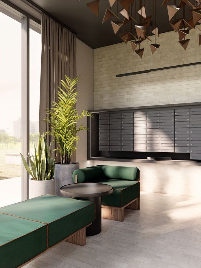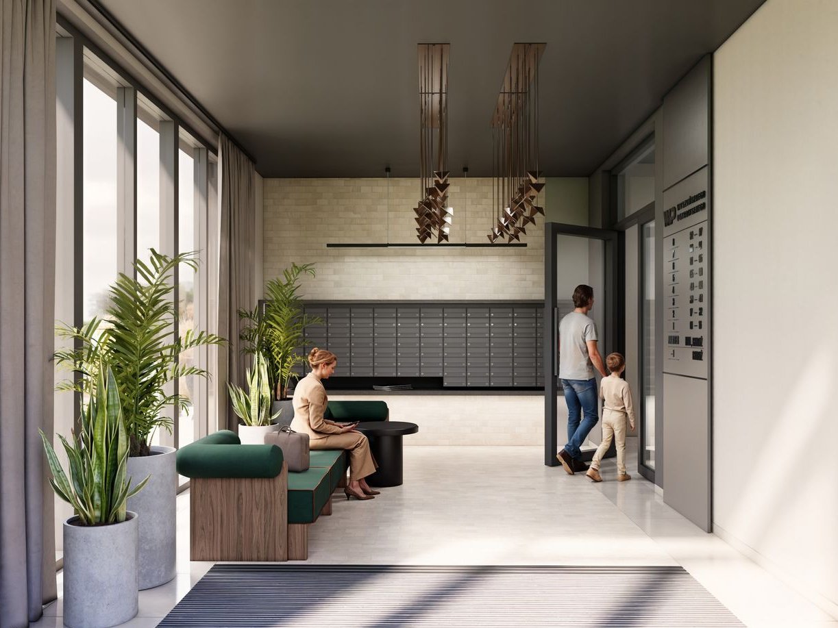 Projekt będzie wyróżniał się oryginalnymi rozwiązaniami architektonicznymi. Zastosowane połączenia naturalnych materiałów oraz szkła i metalu bardzo elegancko będą wyglądać w częściach wspólnych budynku.