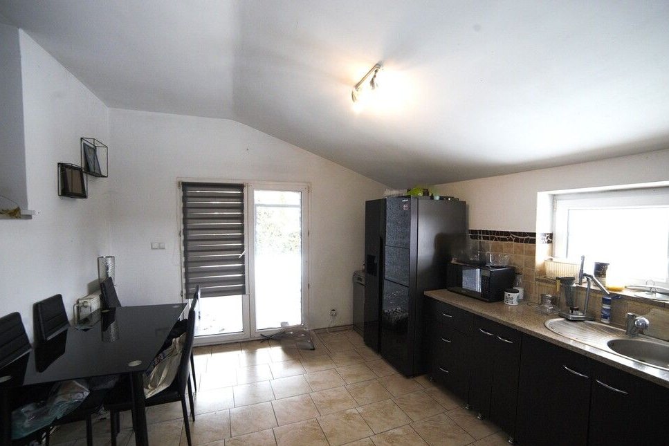Duża, jasna kuchnia z widokiem na ogród, cicha sypialnia oraz funkcjonalna łazienka dopełniają harmonijny układ wnętrza.