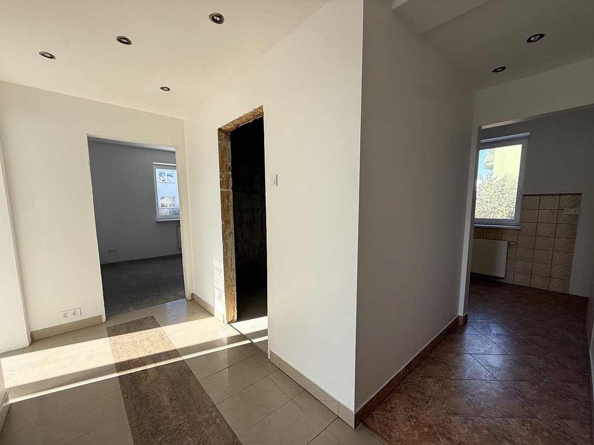 Obecnie układ mieszkani to dwa oddzielne pokoje z oddzielną kuchnią, ale jest możliwość przearanżowanie na 3 pokoje z aneksem kuchennym.