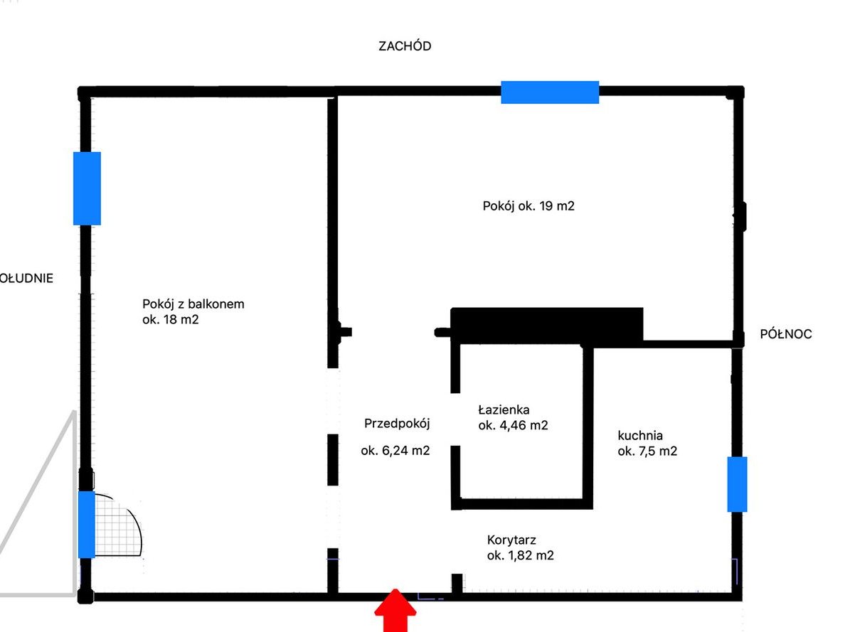 - Przedpokój o pow. ok. 6,24 m2