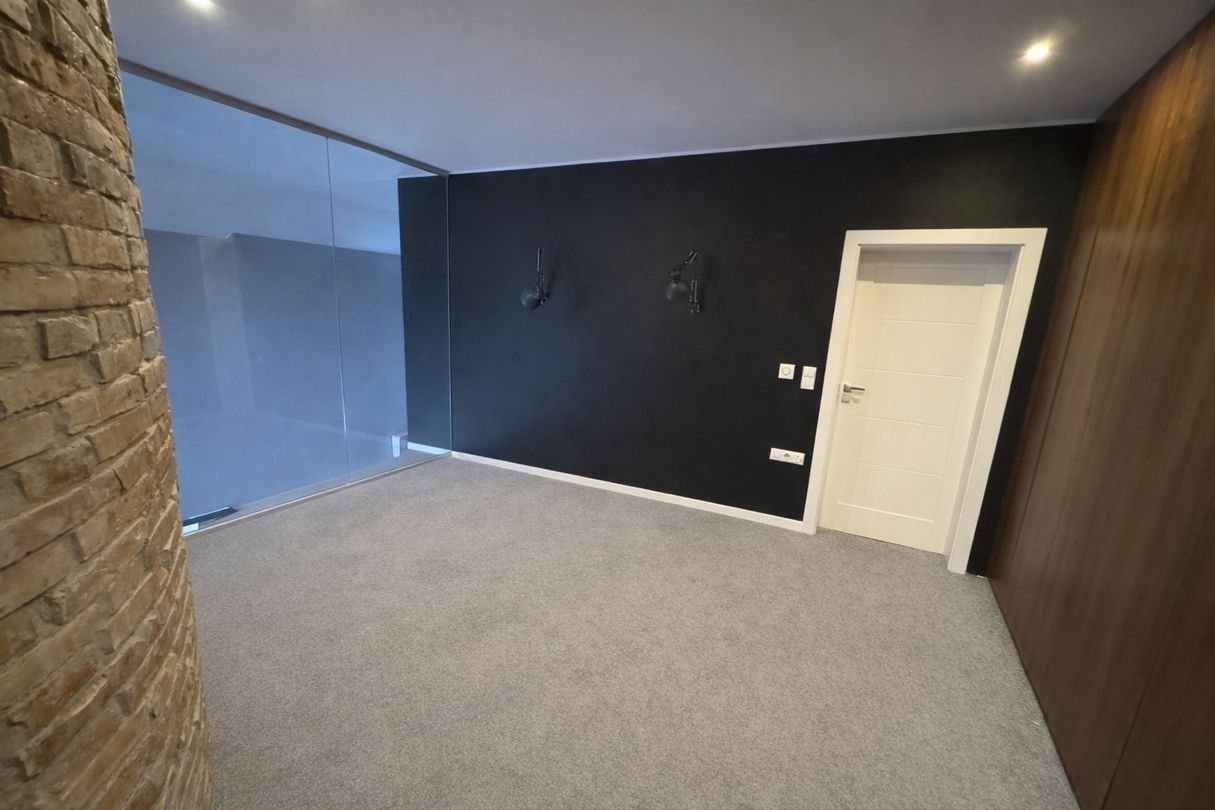 W poszczególnych pokojach na podłogach panele, w łazienkach - płytki ceramiczne. Ściany malowane, w większej łazience oraz sypialni o powierzchni 14 m2 - cegła. W poszczególnych pokojach zamontowano grzejniki.