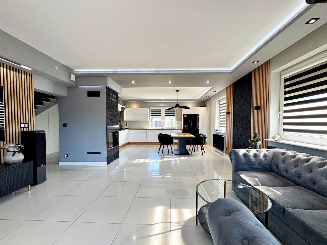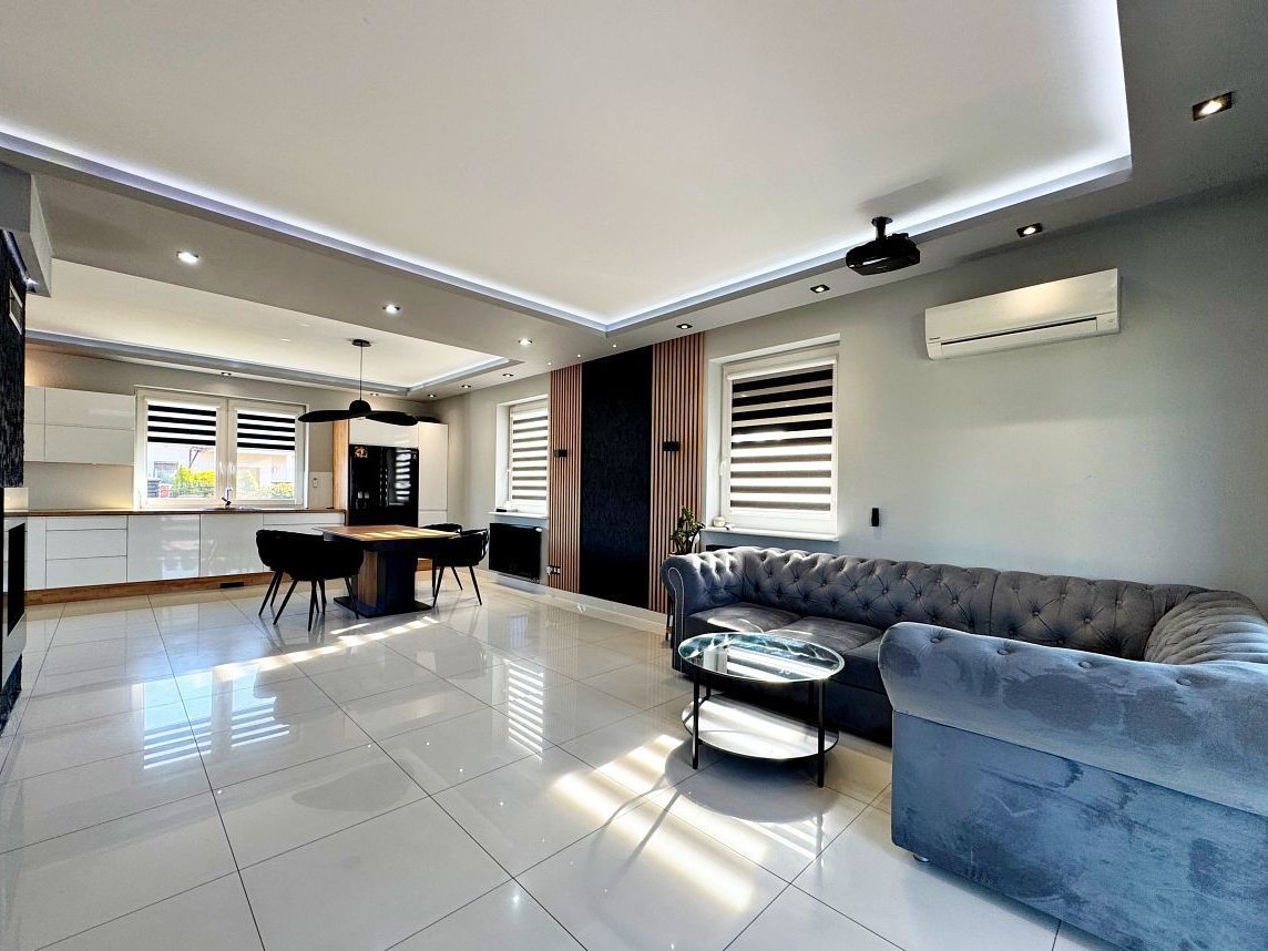 Nieruchomość bardzo zadbana oraz w bardzo dobrym stanie wizualnym oraz techninczym. Nieruchomość została oddana do użytku w 2009 roku. Zabudowa meblowa kuchenna została zaprojektowana oraz wykonana pod wymiar przez Szczecińską firmę stolarską. W meblach kuchennych został zamontowany trwały system zawiasów Blum. W zabudowie kuchennej znajdziemy sprzęty: zmywarka, piekarnik, indukcja, mikrofalówka, lodówka z zamrażarką, pochłaniacz powietrza. Podłoga na parterze jest wyłożona po całości jednolitymi jasnymi kaflami. Podłoga na piętrze w korytarzu oraz dwóch sypialniach jest wyłożona panelami. Podłoga na piętrze w sypialni z garderobą jest wyłożona wykładziną, a w łazience kaflami. W części dziennej została zamontowana klimatyzacja PANASONIC. W części dziennej został zamontowany projektor oraz roleta do projektora. W nieruchomości zostały zamontowane okna PCV 2 szybowe. W nieruchomości do wykorzystania jest również strych który pełni funkcję "składzika". Sąsiedztwo mieszkaniowe jest miłe i bezkonfliktowe. Deszczówka z dachu jest podpięta do kanalizacji gminnej. Droga dojazdowa jest we współudziale wszystkich mieszkańców osiedla.Informacje techniczne: