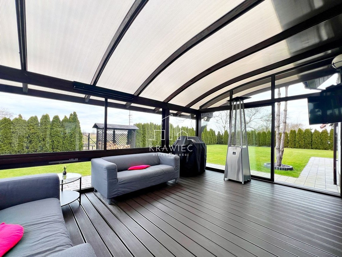 Całe wyposażenie widoczne na zdjęciach zostaje w nieruchomości po sprzedaży z wyjątkiem : TV, sprzętu audio, rzutnika, wolnostojących akcesoriów kuchennych, mebli ogrodowych.