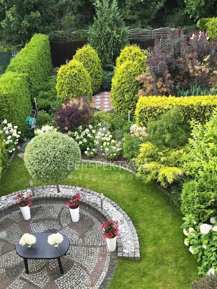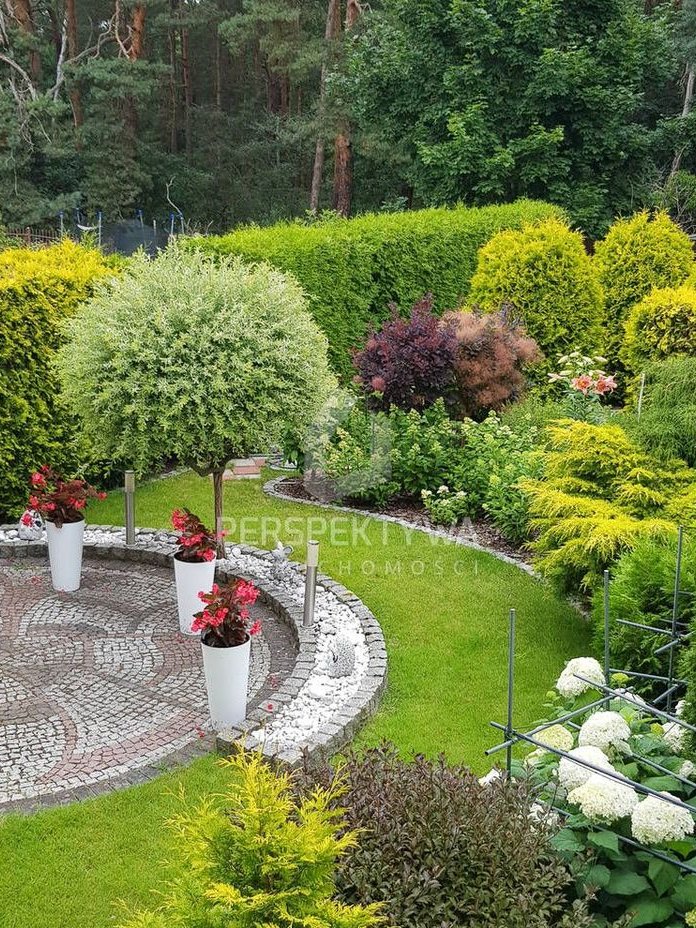 Niezwykłym atutem nieruchomości jest ogród, pięknie zagospodarowany, z przewagą wieloletnich krzewów iglastych i krzewów kwitnących. Ogród z tyłu domu z systemem nawadniania sterowanym programatorem umieszczonym wewnątrz domu. Front domu zdobią okazałe hortensje, lilie drzewiaste i iglaki. Z tyłu budynku znajduje się dodatkowe pomieszczenie do przechowywania sprzętu ogrodowego.