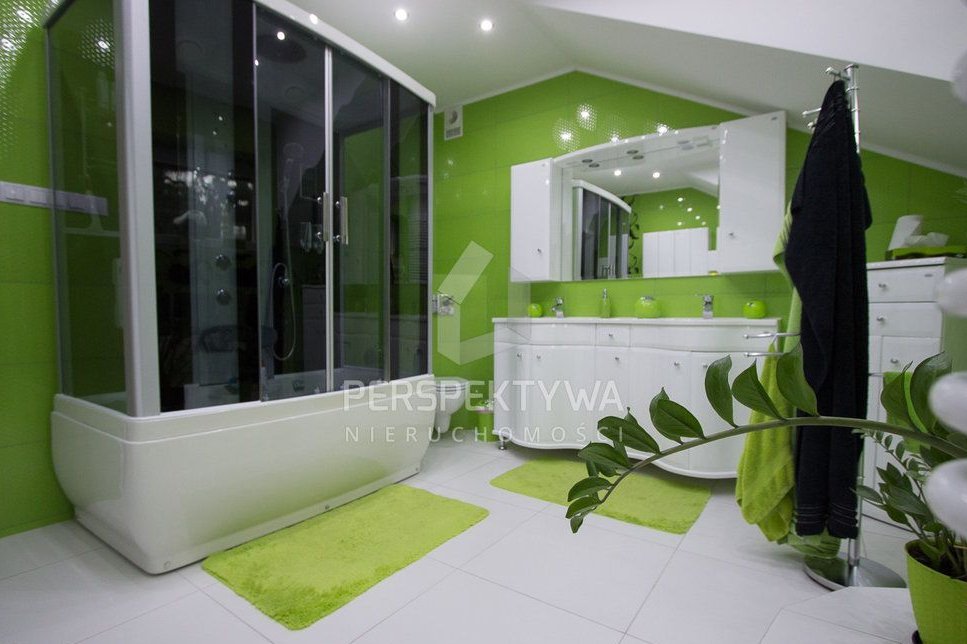 Nad piętrem poddasze nieużytkowe, które świetnie sprawdzi się do przechowywania rzadziej używanych sprzętów lub elementów wyposażenia. w piwnicy znajduje się pomieszczenie kotłowni, jednocześnie stanowiące pralnię. Cała piwnica, w tym garaż wraz ze schodami prowadzącymi na parter domu w płytkach ceramicznych. W pokojach na piętrze domu panele, schody drewniane.