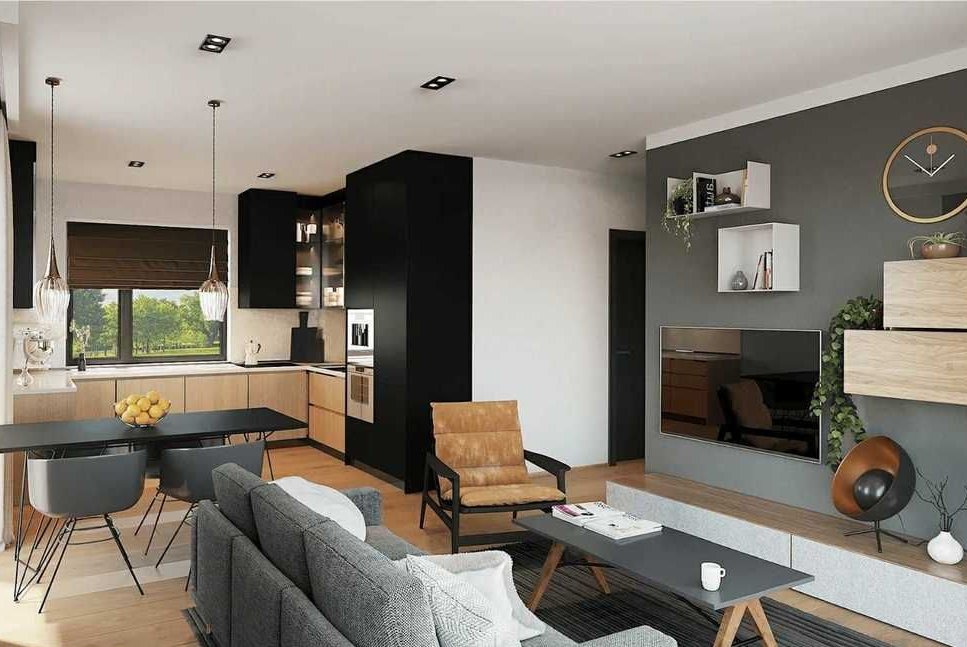 Wykończenie pod klucz – gotowe pakiety lub projekt indywidualny, bez dodatkowych kosztów. W cenie m.in. kuchnia, łazienki, zabudowy, oświetlenie, rolety oraz aranżacja tarasu lub ogródka.